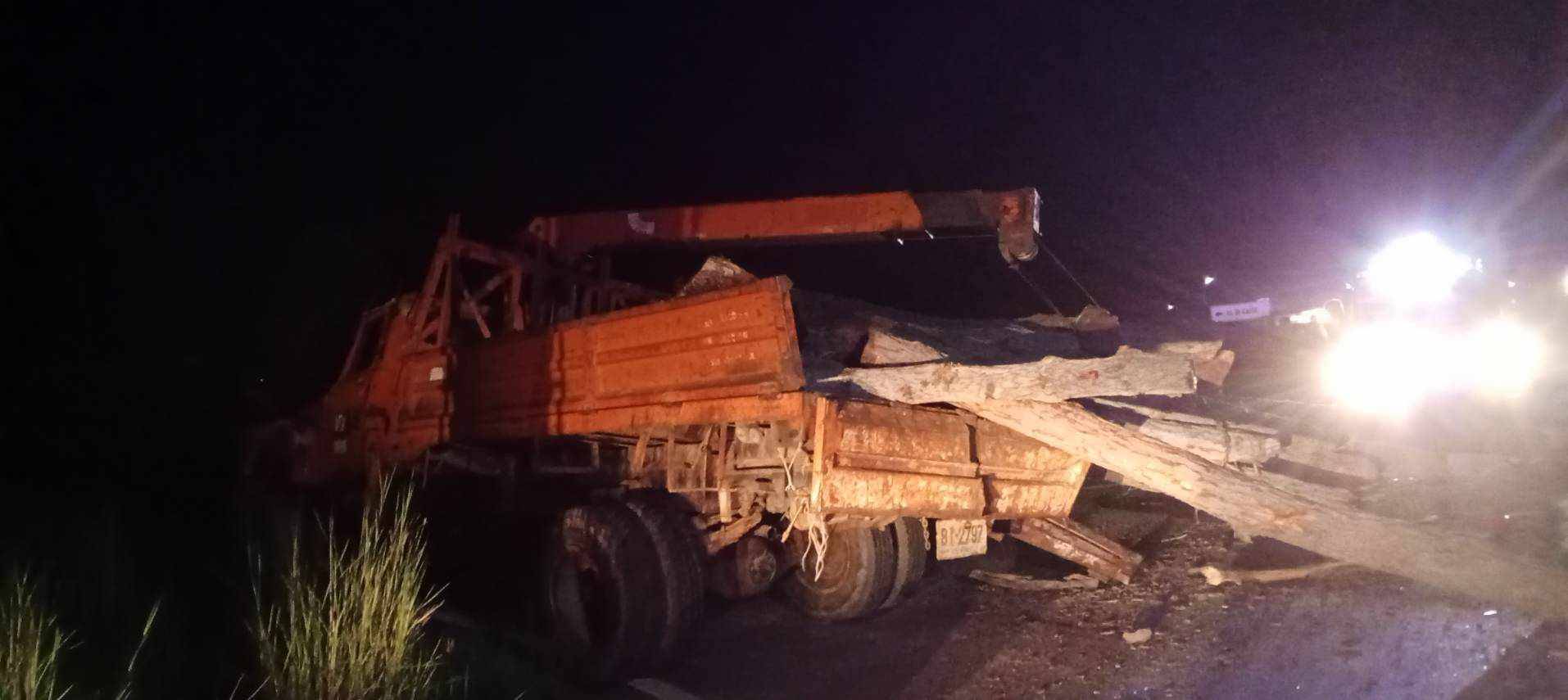 ห่างออกมาประมาณ 100 เมตร พบรถหกล้อ สีส้ม ติดเครน บรรทุกท่อนไม้จอดอยู่ริมข้างทาง บริเวณส่วนปลายของท่อนไม้พบรอยเฉี่ยวชน ซึ่งคนขับได้จอดรถอยู่ข้างทางก่อนเกิดเหตุ
