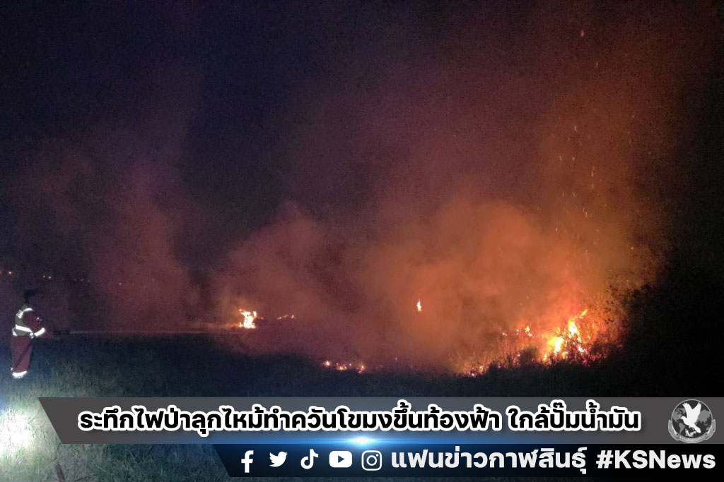 กาฬสินธุ์ ระทึกไฟป่าลุกไหม้ทำควันโขมงขึ้นท้องฟ้ามองเห็นระยะไกล ใกล้สถานีบริการน้ำมัน