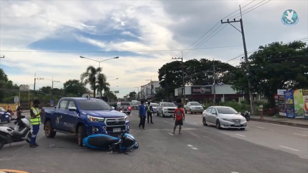 ภาพวงจรปิดสามารถจับภาพได้ ขณะที่รถจักรยานน์และรถกระบะกำลังจะข้ามแยกมา จู่ๆรถกระบะก็ได้พุ่งชนท้ายรถกระบะอย่างจัง ทำให้คนขับรถจักรยานยนต์และผู้โดยสารที่มากับรถได้รับบาดเจ็บ