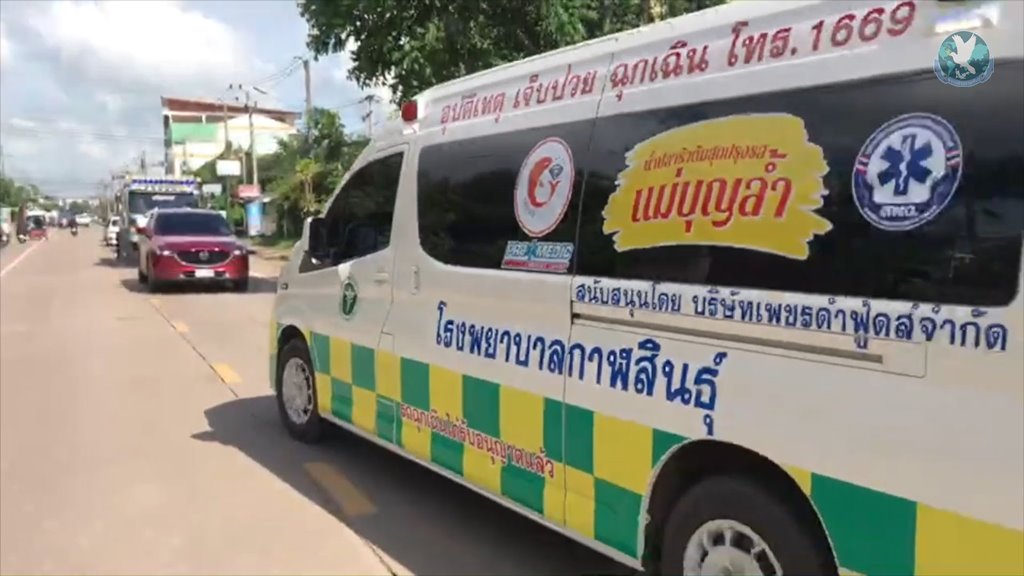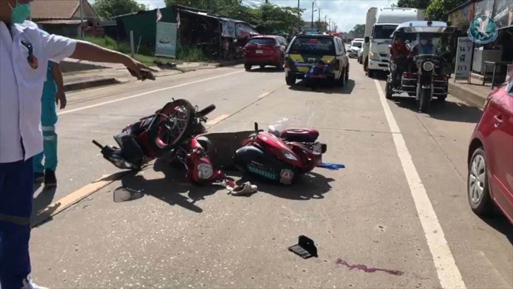 วันที่ 14 ก.ย. 2565 พนักงานสอบสวนเวรสถานีตำรวจภูธรเมืองกาฬสินธุ์ ได้รับแจ้งว่ามีอุบัติเหตุรถจักรยานยนต์ชนกัน ที่บริเวณหน้าร้านขายยาแห่งหนึ่ง ในชุมชนทุ่งมนถนนสายกาฬสินธุ์บ้านต้อน เขตเทศบาลเมืองกาฬสินธุ์ ในที่เกิดเหตุมีผู้ได้รับบาดเจ็บหลายราย จึงพร้อมด้วยเจ้าหน้าที่กู้ชีพกู้ภัยจังหวัดกาฬสินธุ์เข้าตรวจสอบในที่เกิดเหตุ พบผู้ได้รับบาดเจ็บทั้งหมด 4 ราย บาดเจ็บเล็กน้อย 3 ราย และอาการสาหัส 1 ราย เจ้าหน้าที่จึงเร่งให้การช่วยเหลือปฐมพยาบาลเบื้องต้น พร้อมนำตัวส่งรักษาต่อที่โรงพยาบาลกาฬสินธุ์ 3 รายแรกเป็นนักเรียนขับขี่และนั่งมากับรถจักรยานยนต์ฮอนด้า สีเเดงดำ หมายเลขทะเบียน 1กณ287 มหาสารคาม สภาพล้อหน้าพังเสียหาย จอดล้มอยู่บริเวณกลางถนน ติดอยู่กับรถจักรยานยนต์ยามาฮ่า สีแดง หมายเลขทะเบียน 1กฉ9175 กาฬสินธุ์ สภาพที่บริเวณด้านขวาของตัวรถแตกหัก มีร่องรอยการเฉี่ยวชน ได้รับความเสียหาย จอดล้มอยู่บริเวณกลางถนน กีดขวางการจราจร มีคุณตาที่บาดเจ็บสาหัสเป็นผู้ขับขี่
