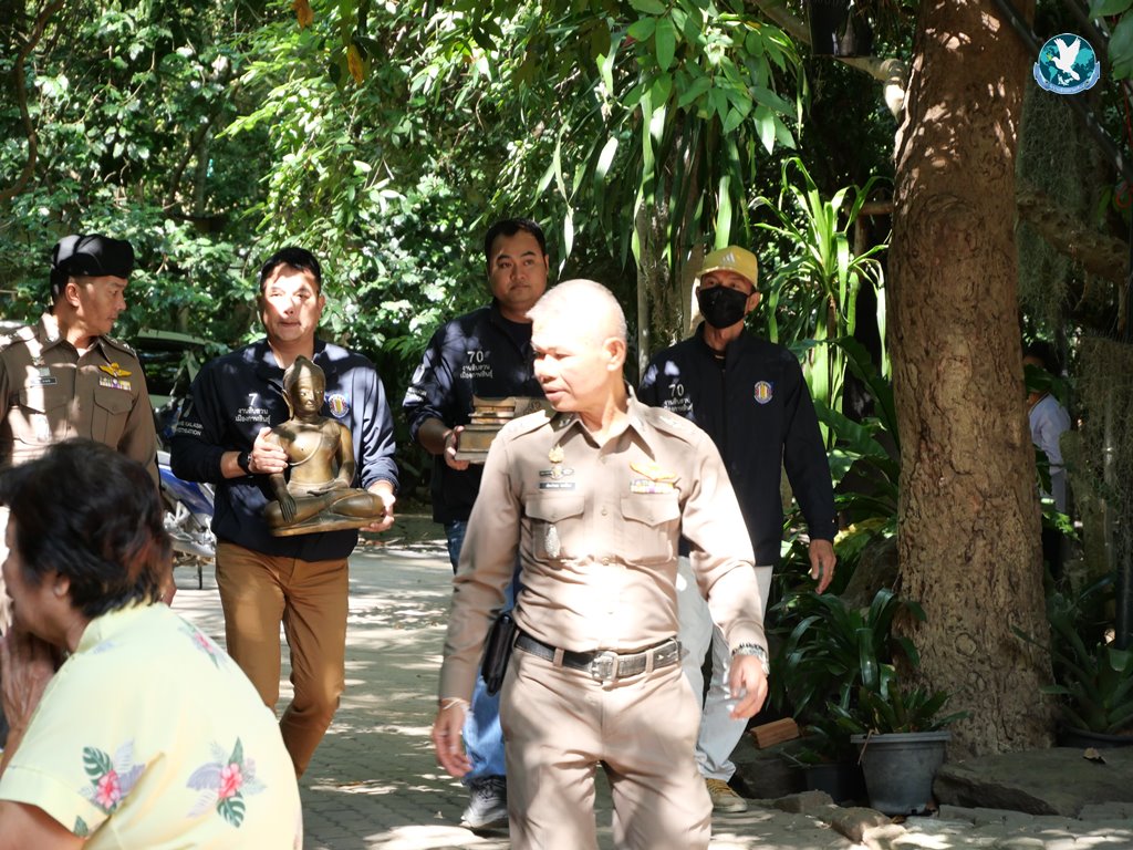 พ.ต.อ.วีระ หางนาค รรท.ผกก.สภ.เมืองกาฬสินธุ์ กล่าวว่า เคสนี้เราได้รับแจ้งเหตุวันที่ 6 พ.ย. 2567 ก็ได้สั่งชุดสืบสวนออกติดตามคนร้าย จนทราบตัวแล้ววันที่ 8 ศาลจังหวัดกาฬสินธุ์ก็ได้ออกหมายจับก็ได้ติดตามจับกุมตัวมาได้จนสืบสวนนำพระพุทธรูปกลับคืนมาได้ จากการประสานท้องที่ในกรุงเทพมหานคร ซึ่งผู้ที่รับไว้ก็เก็บไว้และให้ความร่วมมือได้นำพระพุทธรูปมาคืน และก็จะทำการสอบสวนต่อไปว่ามีส่วนเกี่ยวข้องหรือไม่ มีส่วนรู้เห็นหรือไม่ และในเบื้องต้นคนร้ายก็มีประวัติลักพระพุทธรูปมาก่อน ในทางสอบสวนคิดว่าอาจจะเป็นมาเที่ยวชมแล้วก็เห็น อาจจะดูทางเฟสทางไลน์ว่ามีคนที่ออกสื่อว่ามีความต้องการจะซื้อขายพระพุทธรูป ก็เลยจะลองเอาไปขายดู ตอนนี้ผู้ต้องหาก็อยู่ระหว่างฝากขัง