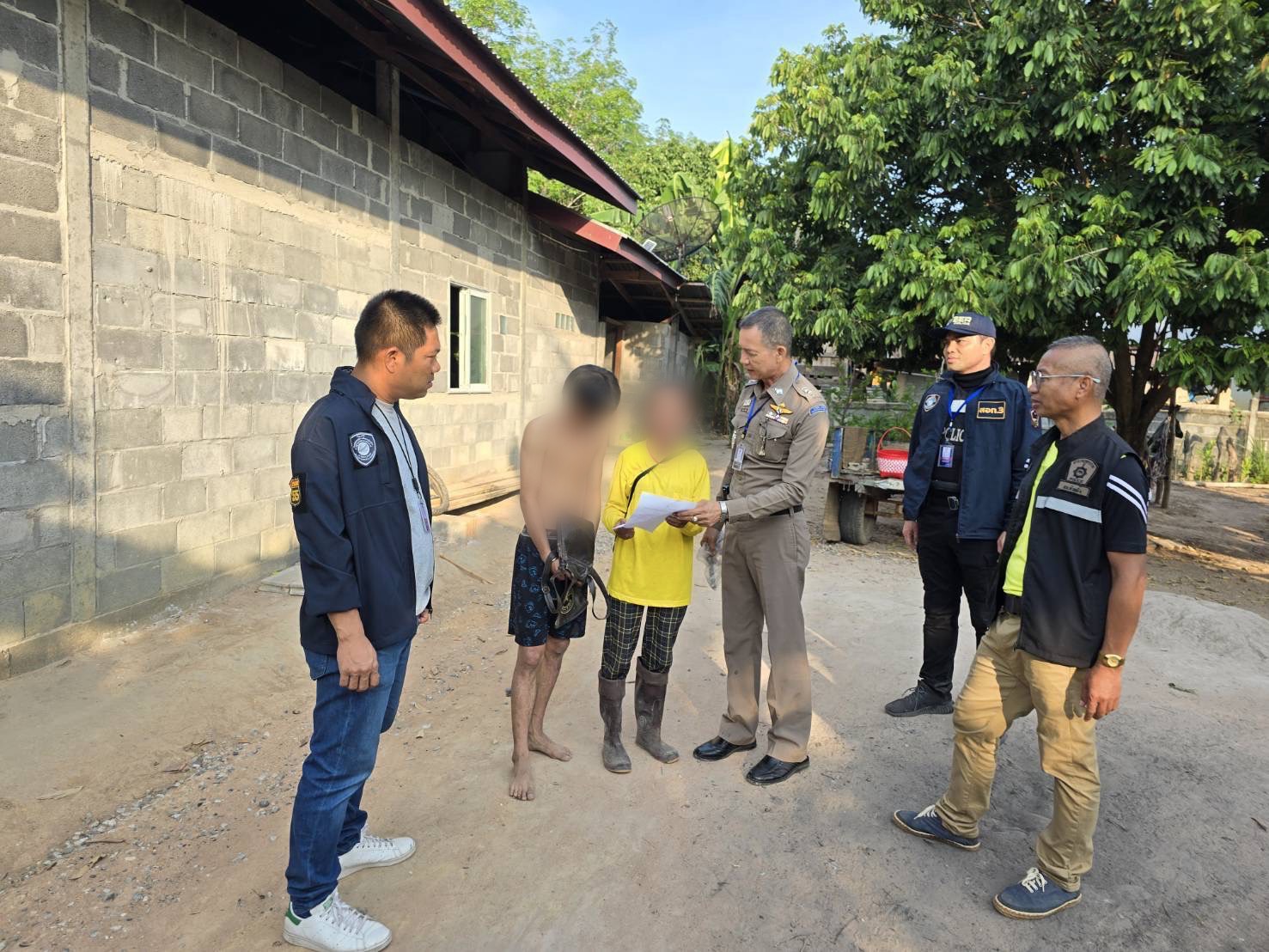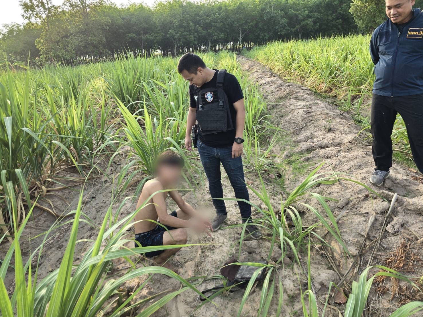 เมื่อเจ้าหน้าที่เดินทางไปถึง พบตัว นายอินทัช หรือ ทีม อายุ 17 ปี อยู่ภายในบ้านหลังดังกล่าว เมื่อนายทีมเห็นเจ้าหน้าที่ ได้แสดงอาการตกใจและรีบคว้ากระเป๋าสะพายหนังสีน้ำตาลที่วางอยู่บนตู้เสื้อผ้าภายในบ้านกระโดดออกทางหน้าต่างภายในห้องนอน แล้ววิ่งหลบหนีมุ่งหน้าไปทางกลางทุ่งนาใกล้บ้าน เจ้าหน้าที่ตำรวจชุดจับกุมจึงรีบวิ่งไล่ติดตามอย่างกระชั้นชิด