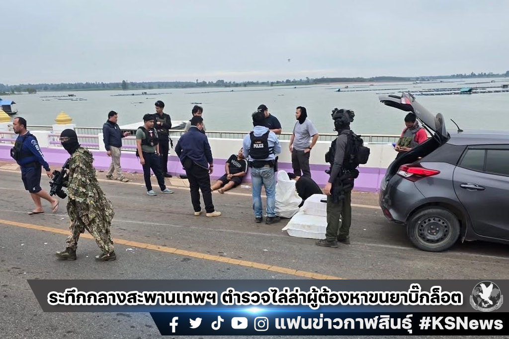 กาฬสินธุ์ ระทึก ไล่ล่า 2 หนุ่มซิ่งหนีชนรถตำรวจ ยึดของกลางยาบ้าได้ 1.2 ล้านเม็ด กลางสะพานเทพสุดา