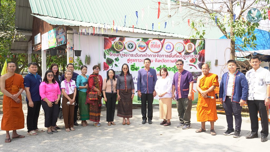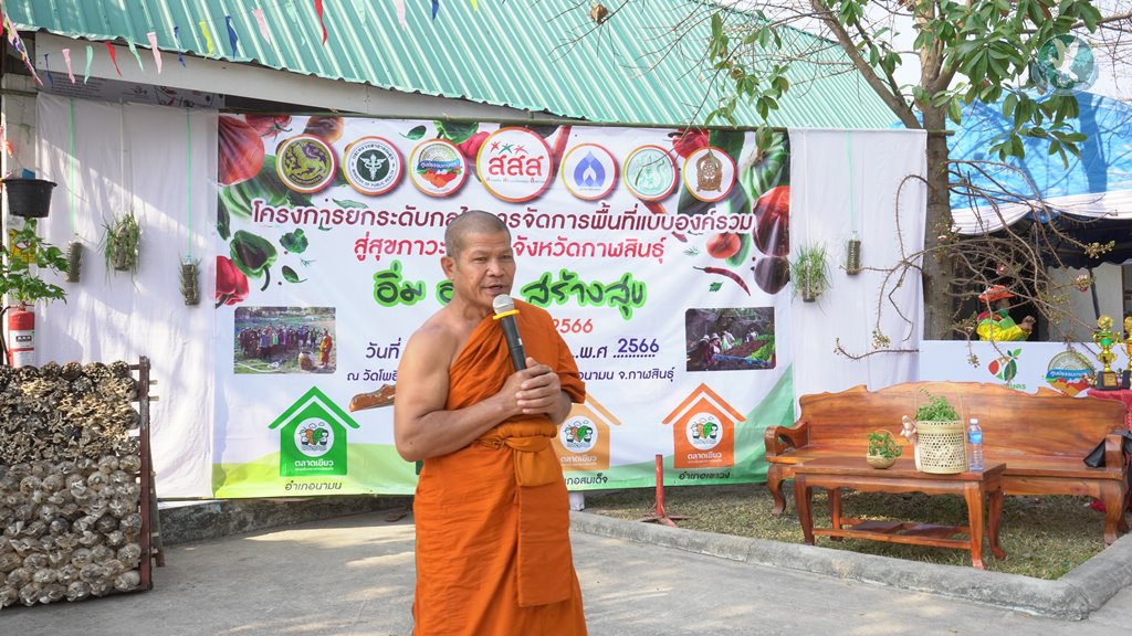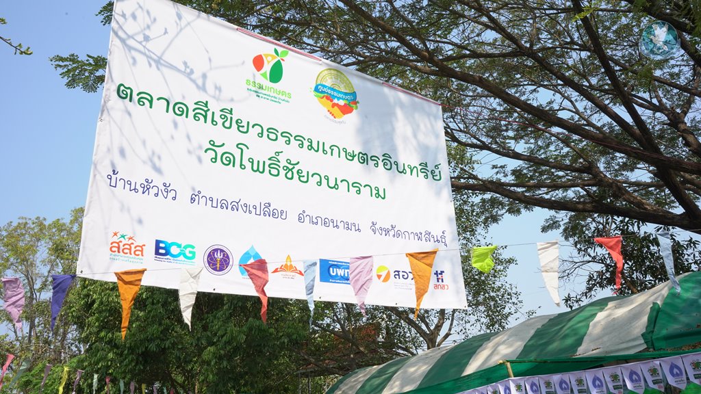 ที่วัดโพธิ์ชัยวนาราม บ้านหัวงัว อำเภอนามน จังหวัดกาฬสินธุ์ โครงการยกระดับกลไกการจัดการพื้นที่แบบองค์รวมสู่สุขภาวะชุมชน จังหวัดกาฬสินธุ์ : อิ่ม ออม สร้างสุข ร่วมกับ คณะศิลปศาสตร์ มหาวิทยาลัยกาฬสินธุ์ ได้ร่วมกันจัดงาน “ตลาดธรรมเกษตรอินทรีย์ ขับเคลื่อนโดยโครงการยกระดับกลไกการจัดการพื้นที่แบบองค์รวมสู่สุขภาวะชุมชน จังหวัดกาฬสินธุ์ : อิ่มออม สร้างสุข” โดยนำสินค้าเกษตรจากเครือข่ายเกษตรอินทรีย์ 4 อำเภอ ได้แก่ อำเภอนามน อำเภอสมเด็จ อำเภอเขาวง และอำเภอห้วยผึ้ง จังหวัดกาฬสินธุ์ มาร่วมกันขายสินค้า และมีการออกซุ้มขายสินค้าจากแปรรูปจากโครงการ BCG คณะศิลปศาสตร์ และการนำเสนอผลการตรวจสุขาภิบาลร้านอาหารและสารปนเปื้อนในอาหารจากร้านจำหน่ายรอบมหาวิทยาลัย โดยนักศึกษาสาขา สาธารณสุขศาสตร์ มหาวิทยาลัยกาฬสินธุ์ โดยได้รับเกียรติจากนางสาวอ้อมอารี ยี่วาศรี นายอำเภอนามน มาเป็นประธานในพิธีเปิดในครั้งนี้