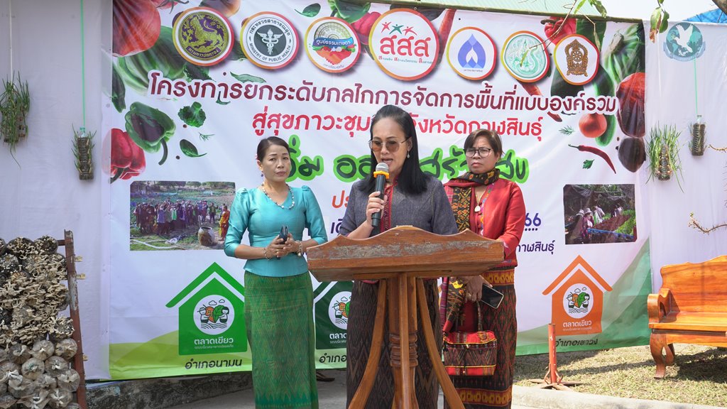 ขณะที่ อาจารย์ กรรณิกา ถุนาพรรณ์ หัวหน้าโครงการวิจัยยกระดับกลไกการจัดการพื้นที่แบบองค์รวมสู่สุขภาวะชุมชน จังหวัดกาฬสินธุ์ : อิ่มออม สร้างสุข” มหาวิทยาลัยกาฬสินธุ์ กล่าวว่า โครงการนี้ได้สนับสนุนการสร้างเสริมสุขภาพ (สสส.) ต่อเนื่องเป็นปีที่ 4 พื้นที่จัดโครงการ 4 อำเภอ ได้แก่ อำเภอนามน อำเภอสมเด็จ อำเภอเขาวง และอำเภอห้วยผึ้ง การจัดตลาดธรรมเกษตรอินทรีย์เป็นการร่วมกันขับเคลื่อนระบบอาหารของชุมชน สร้างตลาดธรรมเกษตรอินทรีย์ พร้อมทั้งร่วมกันเสนอแนะนโยบายด้านการจัดการอาหารปลอดภัย สร้างกลไกการพัฒนาระบบพื้นที่แบบองค์รวมสู่สุขภาวะชุมชน และสร้างองค์ความรู้ เชื่อมโยงการจัดการผลผลิต เพื่อให้เกิดความมั่นคงทางอาหารขึ้นในชุมชน