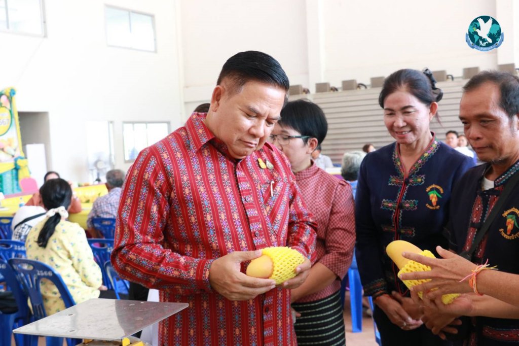 โดยผู้ว่าราชการจังหวัดกาฬสินธุ์ ได้กล่าวพบปะและให้กำลังใจกับเกษตรกรผู้ปลูกมะม่วงเศรษฐกิจ ได้แก่ มะม่วงมหาชนก และมะม่วงน้ำดอกไม้สีทอง ที่สามารถพัฒนาคุณภาพผลผลิตตรงตามความต้องการของตลาด ทำให้ราคารับซื้อเพิ่มสูงขึ้น สามารถสร้างรายได้เข้าประเทศและจังหวัดกาฬสินธุ์ ปีละหลายสิบล้านบาท และได้ลงนามเป็นสักขีพยานการรับซื้อผลผลิตมะม่วงของเกษตรกร กับผู้ประกอบการฯ จำนวน 2 ราย ได้แก่ บริษัท อินสยามกรุ๊ป จำกัด บริษัทตั้งอยู่ในพื้นที่อำเภอยางตลาด จังหวัดกาฬสินธุ์ เป็นผู้ส่งออกผลไม้ให้ประเทศเกาหลี ญี่ปุ่น สิงคโปร์ ดูไบ และ บริษัท ฟิน คอร์ปอเรท จำกัด บริษัทตั้งอยู่ที่จังหวัดพิษณุโลก เป็นผู้ส่งออกและแปรรูปรับซื้อมะม่วงเข้าโรงงานแช่แข็ง ส่งออกประเทศเกาหลี รวมการลงนามทั้งสิ้น 14 คู่สัญญา ปริมาณผลผลิต จำนวน 1,525 ตัน มูลค่าราคาสินค้า 55.25 ล้านบาท