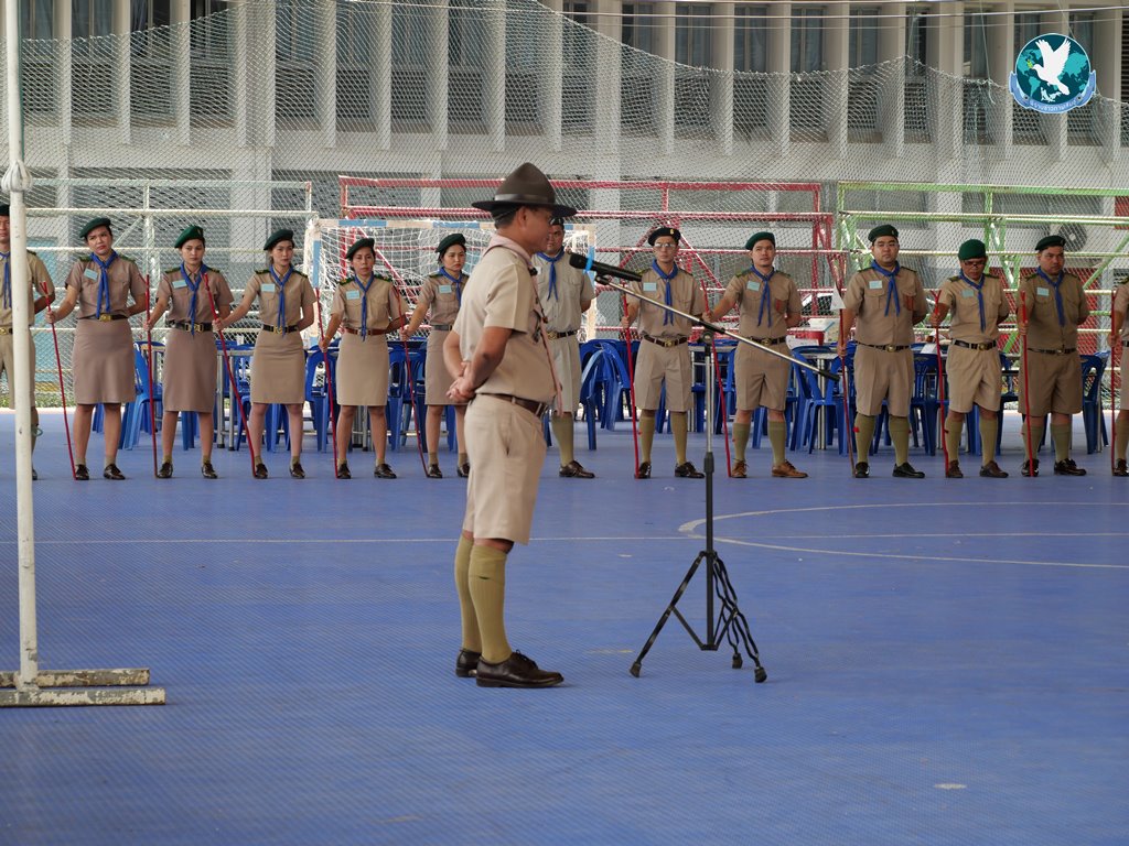 นายศิริรัตน์ ช่วยรักษา รองผู้อำนวยการลูกเสือเขตพื้นที่การศึกษากาฬสินธุ์ เขต 1 รักษาราชการแทน ผู้อำนวยการลูกเสือเขตพื้นที่การศึกษากาฬสินธุ์เขต 1 ปฏิบัติหน้าที่ หัวหน้าสำนักงานลูกเสือจังหวัดกาฬสินธุ์ ประธานในพิธีเปิด กล่าวว่า การฝึกอบรมที่ต้องการฝึกอบรมผู้บังคับบัญชาลูกเสือให้มีความเข้าใจจุดหมาย วัตถุประสงค์ และวิธีการฝึกอบรมเยาวชน โดยวิธีการของลูกเสือในการฝึกอบรม ตามแนวทางของคณะกรรมการลูกเสือแห่งชาติ และสามารถนำความรู้ ประสบการณ์ที่ได้รับไปจัดกิจกรรมการเรียนการสอนได้อย่างถูกต้อง แล้วเป็นแนวทางเดียวกัน ซึ่งกระบวนการของลูกเสือเป็นที่ยอมรับกันทั่วโลก ว่าเป็นกระบวนการที่ใช้ในการพัฒนาคนให้มีจิตใจเป็นมนุษย์สมบูรณ์ ไม่ว่าจะอยู่ในสถานะใดทุกคนเมื่อเข้ามาอยู่ในกระบวนการฝึกอบรมแล้วต้องปฏิบัติตนตามกฎระเบียบ เพื่อสร้างวินัยให้กับตนเอง เมื่อทุกคนมีวินัยกับตนเองได้ก็จะส่งผลให้การกระทำเกิดประสิทธิผลได้อย่างมีคุณภาพ ตามวัตถุประสงค์ที่ตั้งไว้ จึงขอขอบคุณคณะกรรมการดำเนินงานทุกฝ่าย คณะวิทยากรทุกท่าน ที่ได้เสียสละเวลาอันมีค่าของท่าน อุทิศตนเพื่อกิจการลูกเสือไทย ร่วมเป็นวิทยากรในครั้งนี้ โดยเฉพาะอย่างยิ่งผู้เข้ารับการฝึกอบรมทุกท่าน ที่มีความตั้งใจที่จะเข้ามารับการฝึกอบรม นำความรู้ที่ได้ไปพัฒนาตนเอง พัฒนางานในกองลูกเสือวิสามัญของสถานศึกษา ให้เกิดประสิทธิภาพต่อไปในอนาคต