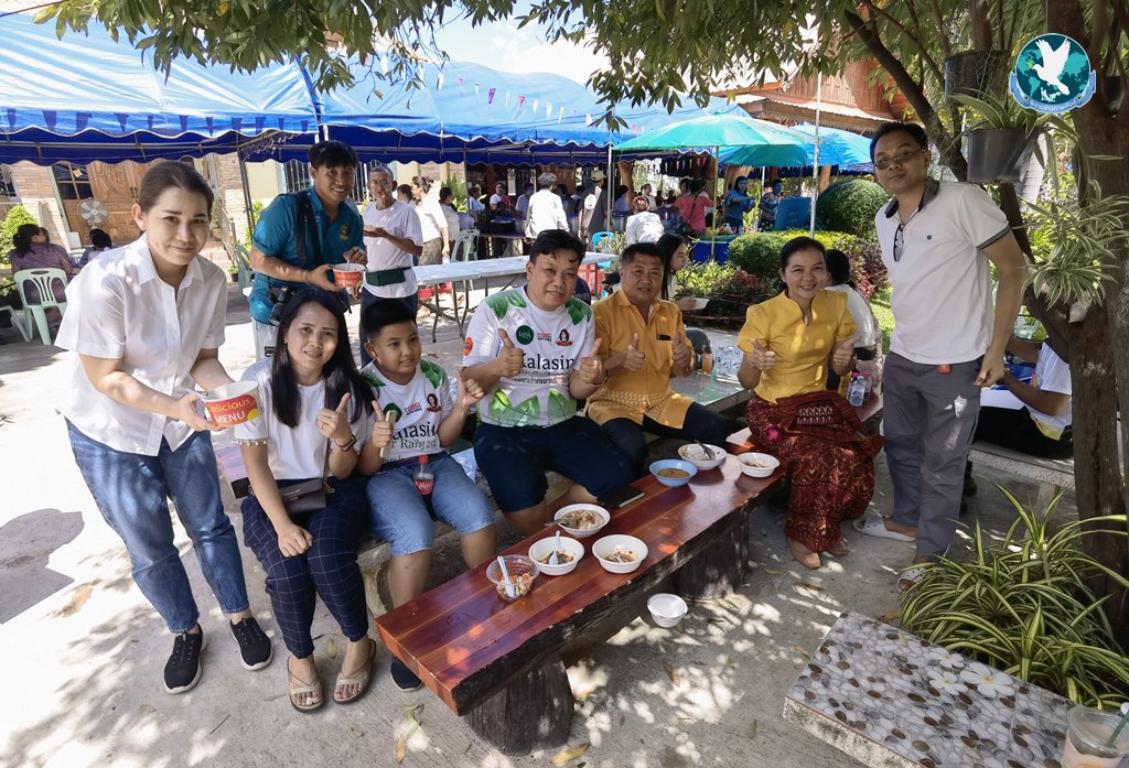 ส่วนสีสันของงานบุญกฐินสามัคคี ณ วัดดงสว่างใต้ ต.ห้วยโพธิ์ อ.เมือง จ.กาฬสินธุ์ มีชาวบ้านมาทำโรงทานแจกอาหารตั้งแต่ช่วงเช้า มีทั้งขนมจีน ก๋วยจั๊บใหม่ๆร้อนๆ ไอศกรีมเย็นๆ ที่ได้รับความสนใจอีกซุ้มโรงทานหนึ่งจะเป็นโรงทานยำรวมมิตร จากผลิตภัณฑ์ตัวใหม่จากน้ำยำปลาร้าแม่บุญล้ำ ที่คัดสรรเลือกวัตถุดิบอย่างดีมาทำยำแซบๆ แจกผู้มาร่วมทำบุญ