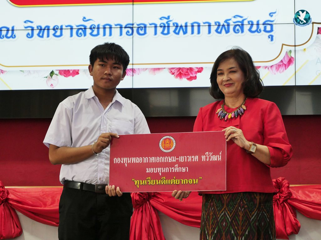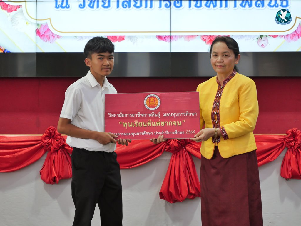 นายมานพ ภูทองขาว รองผู้อำนวยการ กล่าวว่า การศึกษาเป็นปัจจัยที่สำคัญต่อนักเรียน นักศึกษา วิทยาลัยการอาชีพกาฬสินธุ์ จึงได้เล็งเห็นความสำคัญในการศึกษาจึงได้จัดให้มีพิธีมอบทุนการศึกษา ซึ่งถือเป็นประเพณีที่ยึดถือปฏิบัติสืบต่อกันมา เพื่อเป็นการช่วยเหลือให้กับนักเรียน นักศึกษา ผู้ที่มีการเรียนดีแต่ขาดแคลนทุนทรัพย์ ความประพฤติดี มีผลการเรียนดีช่วยเหลือกิจกรรมของวิทยาลัยฯ เพื่อนำไปเป็นค่าใช้จ่ายในการศึกษาเล่าเรียน และนำไปเป็นค่าใช้จ่ายให้เกิดประโยชน์สูงสุด แบ่งเป็นทุนเรียนดี ยากจน 40 ทุน, ทุนไทยสงวนวรกุล (พ่อแม่หย่า-ร้าง) 34 ทุน และทุนช่วยเหลือกิจกรรม 21 ทุน รวมทั้งสิ้น 95 ทุน เพื่อหนุนให้นักเรียน นักศึกษาที่เป็นคนคุณภาพเหล่านี้ เป็นกำลังสำคัญในการพัฒนาชาติของเราในอนาคต