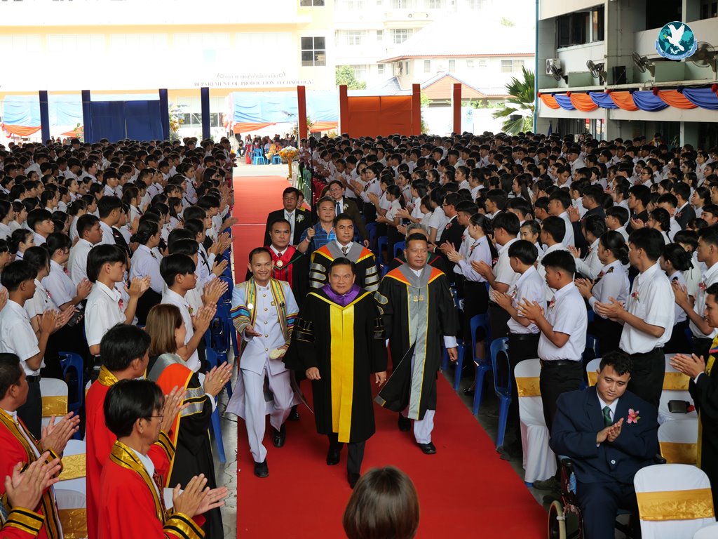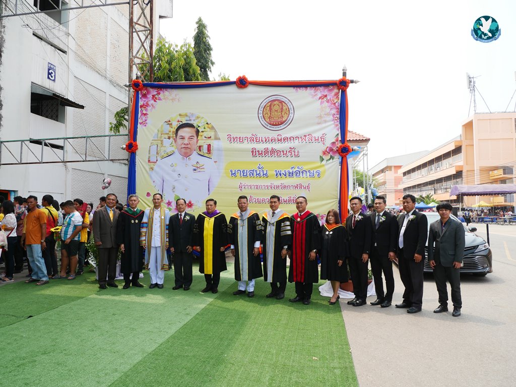 วันนี้ (8 มี.ค. 2567) วิทยาลัยเทคนิคกาฬสินธุ์ จัดพิธีมอบประกาศนียบัตรแก่ผู้สำเร็จการศึกษา ประจำปีการศึกษา 2566 ณ โดมอเนกประสงค์ วิทยาลัยเทคนิคกาฬสินธุ์ อ.เมือง จ.กาฬสินธุ์ โดยมีนายสนั่น พงษ์อักษร ผู้ว่าราชการจังหวัดกาฬสินธุ์ เป็นประธานในพิธี พร้อมด้วย หัวหน้าส่วนราชการทั้งภาครัฐ เอกชน ร่วมพิธีอย่างพร้อมเพรียง โดยนายประดิษฐ์ ญาณประเสริฐ ผู้อำนวยการวิทยาลัยเทคนิคกาฬสินธุ์ นำคณะผู้บริหาร ครู บุคลากรทางการศึกษา และนักเรียน นักศึกษา ให้การต้อนรับ