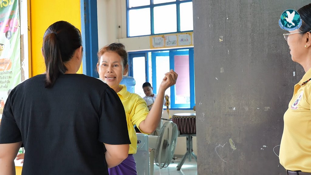 ว่าที่ร้อยตรีหญิงธารีรัตน์ โลหะพรหม หรือที่เด็กๆ เรียกว่า ครูยายจ๋า (ครูอาสารับเงินเดือน 7,000 บาท) อายุ 53 ปี กล่าวว่า มาสอนดนตรีอยู่ที่นี่เป็นปีที่ 2 ตนเองเป็นคนพื้นเพกาฬสินธุ์แต่อยู่อีกอำเภอ และเคยเป็นครูจิตอาสาขึ้นไปสอนบนดอยแม่สลองใน อ.แม่ฟ้าหลวง จ.เชียงราย ก็เลยได้มีโอกาสเข้ามาช่วยโรงเรียนแห่งนี้ทำรางวัลพระราชทาน จึงได้เห็นมาเห็นเด็กๆ ซึ่งในช่วงนี้มีฝนตกประจำก็เลยได้ทำหน้าที่รับ-ส่งเด็กๆ ได้เห็นชีวิตการเป็นอยู่ของเด็กที่อยู่บ้าน ก็เลยมีความคิดว่าถ้าไม่อยู่ช่วยสอนช่วยปั้นเด็กๆ คงจะไม่ได้แล้ว ประจวบกับคุณพ่อได้เสียชีวิตแล้ว ก็เลยกลับมาอยู่บ้านได้เข้ามาดูแลเด็กน้อย ปั้นเขาตั้งแต่อยู่ ป.1 ป.2 ซึ่งปัจจุบันในวงโปงลางฟันน้ำนม มีสมาชิกอยู่ 12 คน สมาชิกในวงที่มีอายุน้อยที่สุดคือน้องสตังค์ มือเบส เรียนอยู่ชั้น ป.3 ที่เรียนเบสมาตั้งแต่ ป.1 โดยวงโปงลางฟันน้ำนม ได้รับรางวัลชนะเลิศระดับเขตการศึกษา ถูกรับเชิญไปแสดงที่งานกาชาดจังหวัดกาฬสินธุ์เมื่อปีที่ผ่านมา ล่าสุดก็ได้ไปแลกเปลี่ยนเชื่อมโยงดนตรีอีสานของประเทศไทยที่นครเวียงจันทร์