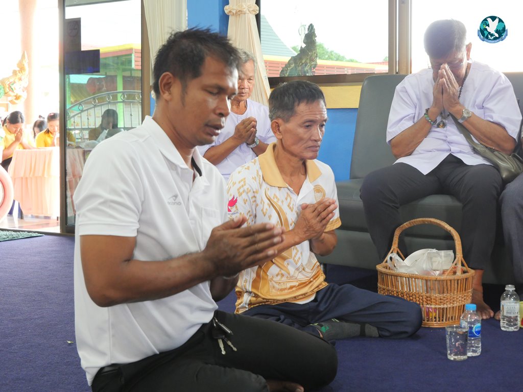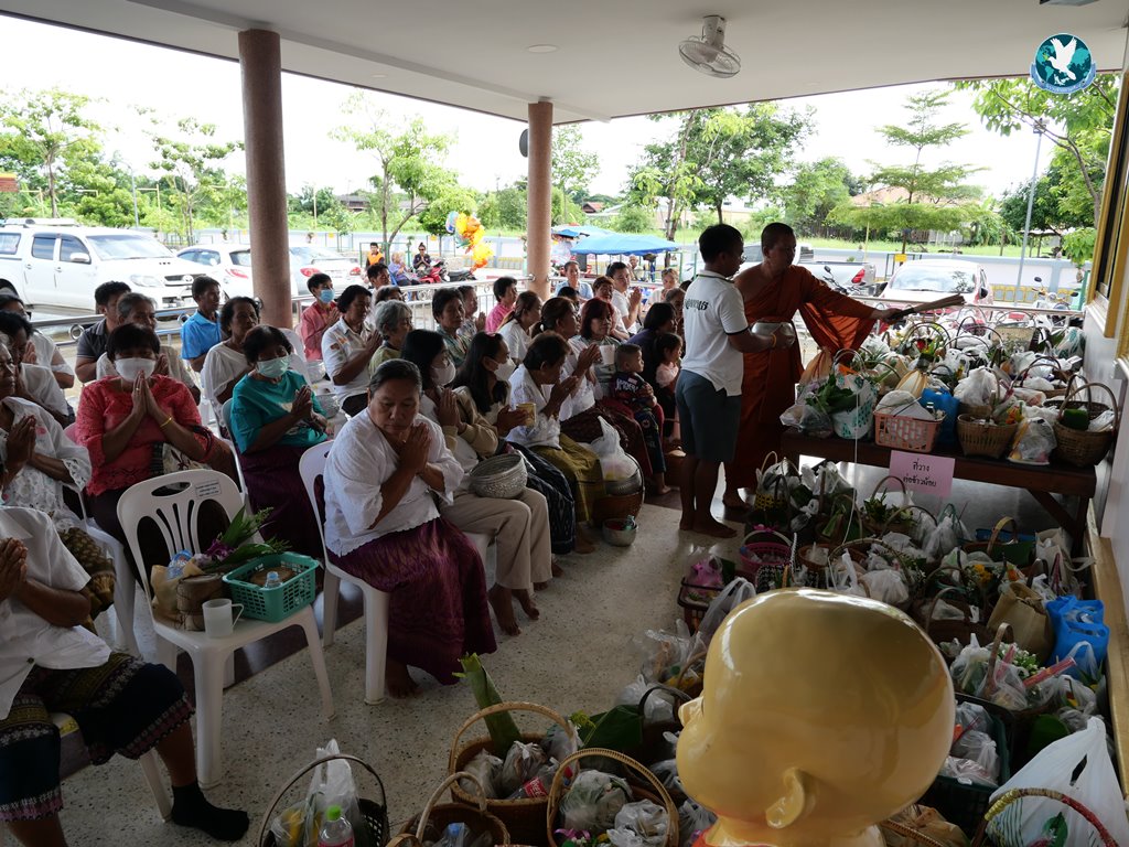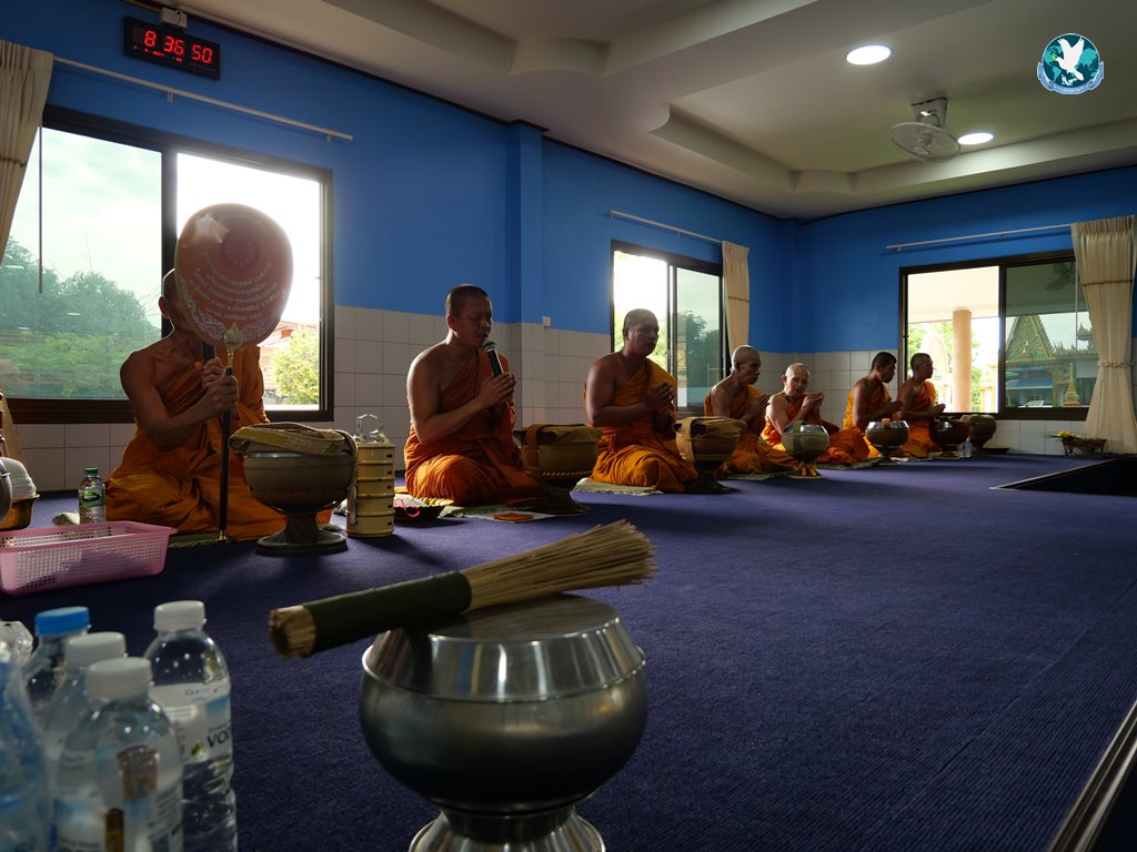 จากนั้น พระสงฆ์ทั้ง 7 รูป ได้เจริญพระพุทธมนต์ บทถวายพรพระ เริ่มพิธีตักบาตร/ถวายภัตตาหาร/สวดห่อข้าวน้อย ต่อจากนั้นพระสงฆ์พิจารณาบังสุกุล กล่าวสัมโมทนียกถา/พระสงฆ์ อนุโมทนา/กรวดน้ำ รับพร จากนั้นทางญาติก็ได้นำห่อข้าวน้อยไปวางตามอัฐิธาตุ เป็นเสร็จพิธี