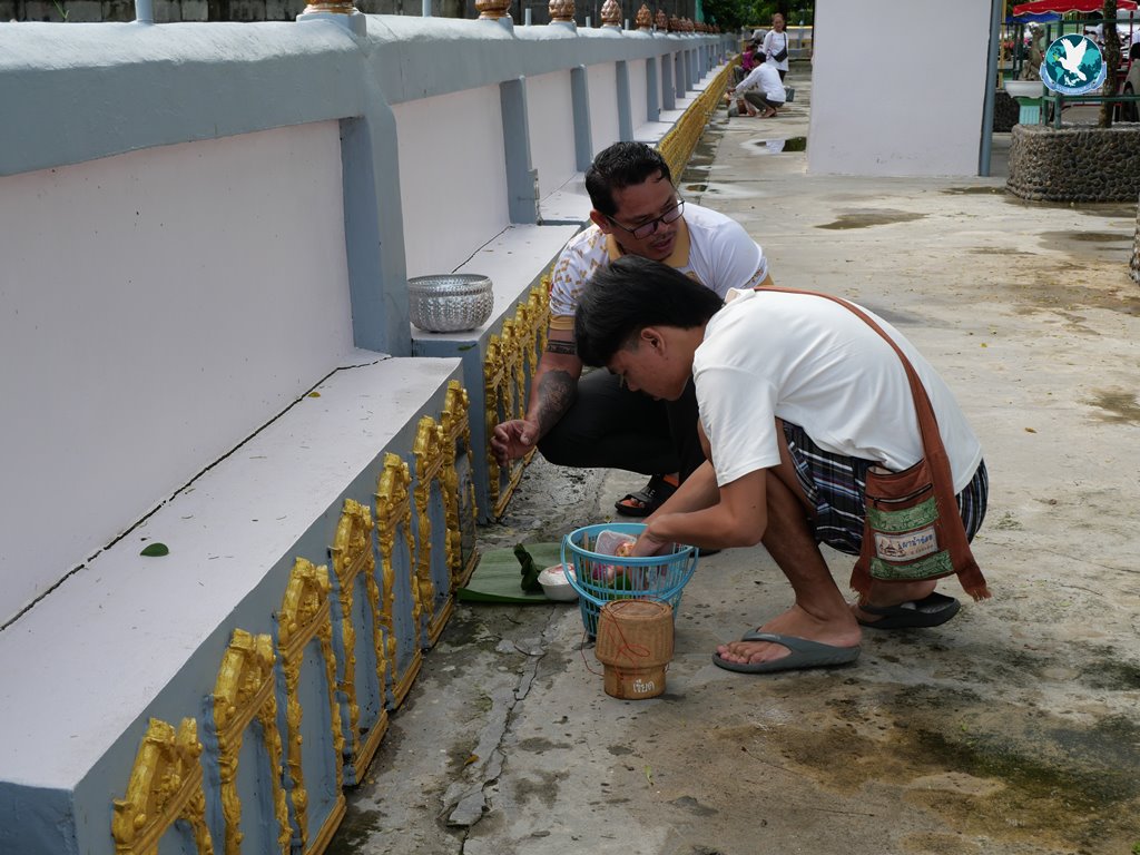 มีความเชื่อกันว่า การทำบุญเพื่ออุทิศส่วนกุศลให้แก่ผู้ล่วงลับไปแล้ว รวมถึงให้ทานแก่สัตว์นรก เปรต และสัมภเวสี วิญญาณเร่ร่อนไร้ญาติ โดยจะนำอาหาร ไปวางกองไว้ที่พื้น เพื่อให้วิญญาณเหล่านั้น สามารถเข้าไปกินอาหารได้ ถือเป็นการรักษาขนบธรรมเนียมของชาวอีสาน ที่ปฏิบัติสืบทอดกันมายาวนาน และเป็นความเชื่อว่า หากนำอาหารให้กับญาติที่ล่วงลับไปแล้ว ญาติก็จะไม่อดอยาก ซึ่งจะส่งผลดีถึงคนในครอบครัวอีกด้วย