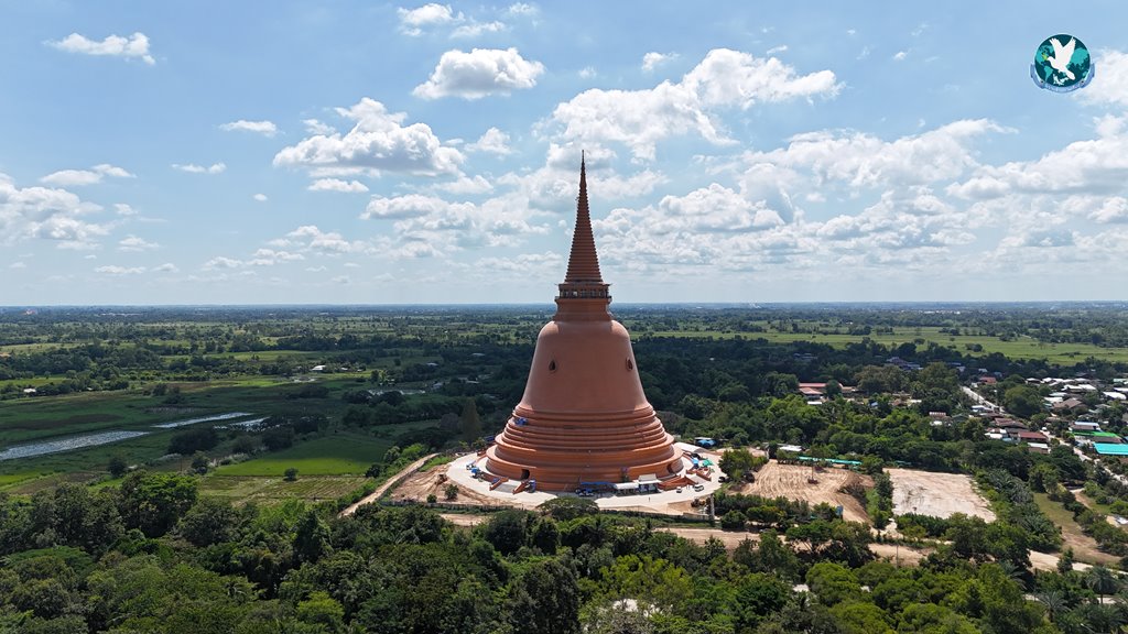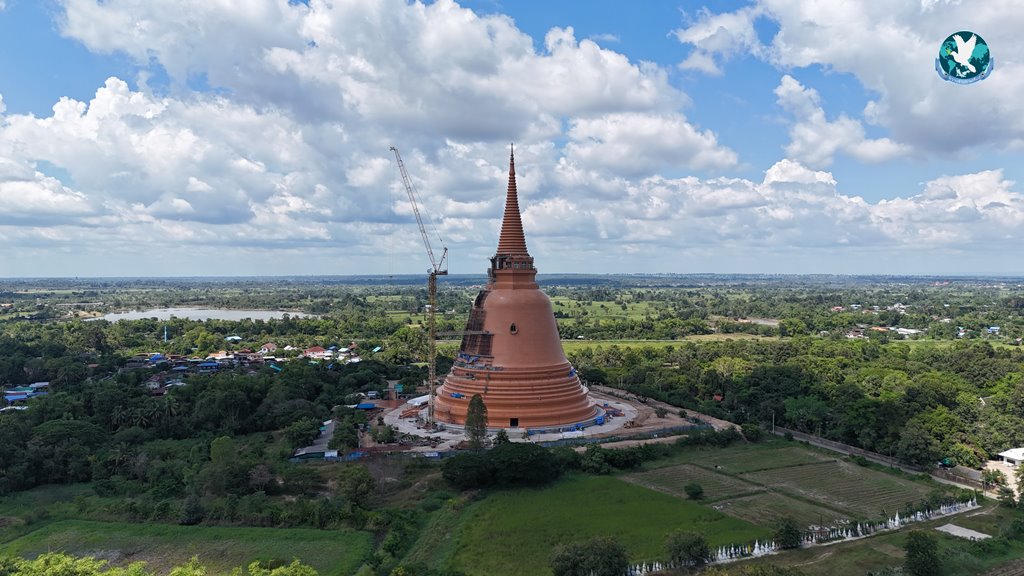 กาฬสินธุ์ เป็นภาพมุมสูงที่ถ่ายให้เห็นองค์พระมหาเจดีย์ ของวัดป่ามัชฌิมวาส บ้านดงเมือง หมู่ 13 ต.ลำพาน อ.เมือง จ.กาฬสินธุ์ ที่ตั้งโดดเด่นตระการตา สามารถมองเห็นได้ไกลจากระยะเป็น 10 กิโลเมตร ซึ่งได้จัดพิธียกยอดพระมหาเจดีย์ขึ้นในวันที่ 3 กันยายน 2567 ที่ผ่านมา