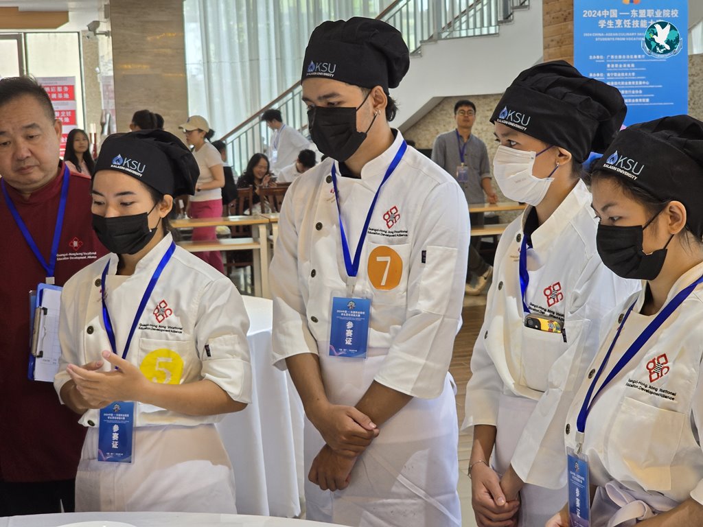 โดยเมื่อวันที่ 28 ตุลาคมที่ผ่านมา มหาวิทยาลัยกาฬสินธุ์ได้ส่งตัวแทนนักศึกษาพร้อมด้วยบุคลากรเข้าร่วมการแข่งขันทักษะการประกอบอาหารในรายการ “The 2024 China-ASEAN Culinary Skill Competition for Students from Vocational Colleges” ที่จัดขึ้นในระหว่างวันที่ 28 ตุลาคม – 1 พฤศจิกายน พ.ศ. 2567 ณ วิทยาลัยเทคโนโลยีการอาชีพหนานหนิง มณฑลกว่างซี ประเทศสาธารณรัฐประชาชนจีน ตามคำเชิญจากวิทยาลัยเทคโนโลยีการอาชีพหนานหนิง (Nanning College for Vocational Technology) โดยสาขาวิชาเทคโนโลยีการอาหาร คณะเทคโนโลยีการเกษตร ได้เป็นส่วนงานที่ทำการคัดเลือกตัวแทนนักศึกษา พร้อมทั้งดำเนินการฝึกซ้อม เพื่อเข้าร่วมแข่งขันโดยมีนักศึกษาสาขาวิชาเทคโนโลยีการอาหารเข้าร่วมการแข่งขัน ผลการแข่งขันนักศึกษาคนเก่งคว้ารางวัลอย่างภาคภูมิใจในงานจำนวน 2 รางวัลมาครองได้สำเร็จ