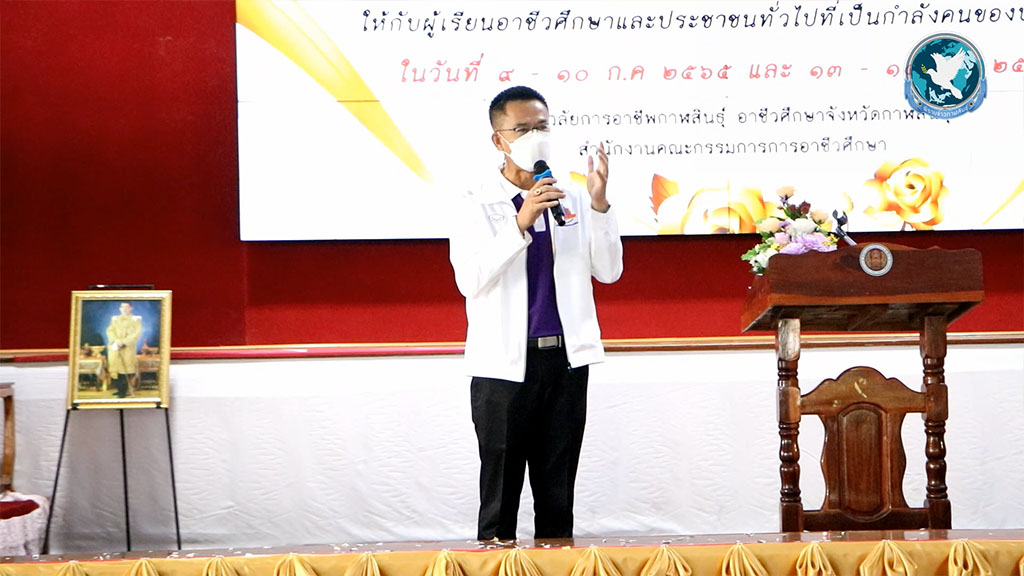 ด้านนางเพ็ญแข พิมพิไสย รองผู้อำนวยการ รักษาการในตำแหน่งผู้อำนวยการวิทยาลัยการอาชีพกาฬสินธุ์ กล่าวว่า สำนักงานคณะกรรมการการอาชีวศึกษา มีนโยบายยกระดับการผลิตและพัฒนากำลังคนให้ตอบสนองต่อความต้องการของประเทศ แผนยุทธศาสตร์พัฒนาคุณภาพการศึกษาและการเรียนรู้ พร้อมทั้งขยายกลุ่มเป้าหมายตามเจตนารมณ์เดิม คือเฉพาะกลุ่มวิทยาลัยสารพัดช่าง โดยให้บริการฝึกอบรมและพัฒนาวิชาชีพระยะสั้นทุกรูปแบบ เพื่อให้สามารถกระจายการพัฒนาทักษะอาชีพออกไปยังทั่วประเทศได้อย่างมีประสิทธิภาพและประสิทธิผล ทั้งเพื่อเป็นการหนุนเสริมมิติการพัฒนาผู้เรียนและประชาชนให้ได้รับการฝึกอบรมวิชาชีพ เป็นกำลังคนที่มีคุณภาพและมีสมรรถนะสูงต่อไป ซึ่งเป็นกิจกรรมหลักภายใต้โครงการ ฯ ที่จัดสรรงบประมาณให้กับสถานศึกษาไปดำเนินงาน คือการส่งเสริมและสนับสนุนการฝึกอบรมพัฒนาทักษะอาชีพให้กับผู้เรียนอาชีวศึกษาและประชาชนทั่วไป