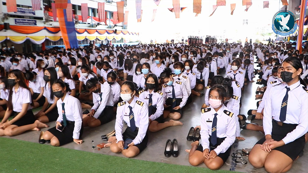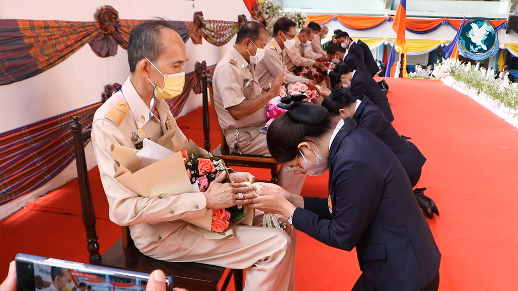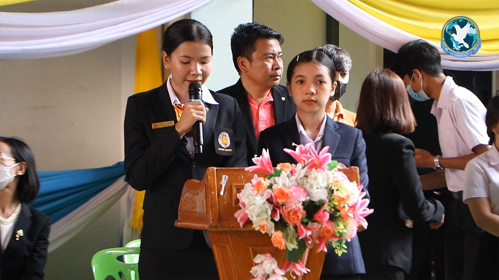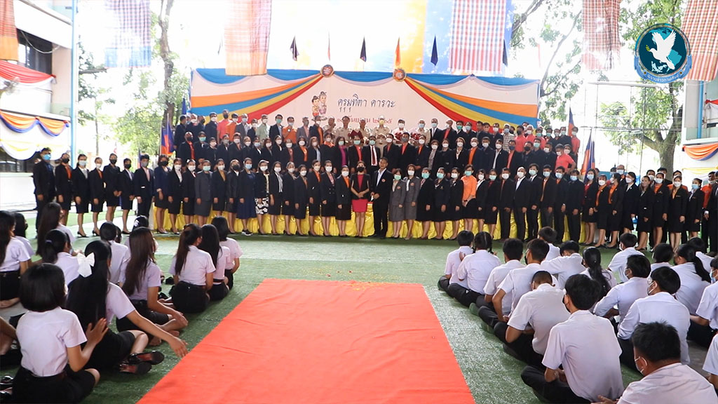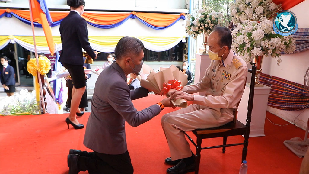 จากนั้นนักเรียนนักศึกษาได้ร่วมกันล้อมเป็นวงกลม เพื่อมอบดอกให้ให้กับผู้เกษียณอายุราชการทั้ง 6 ท่าน เพื่อแสดงออกถึงความรักที่ลูกๆนักเรียนนักศึกษาทุกคนให้กับผู้บริหารและครูที่เกษียณอายุราชการในครั้งนี้