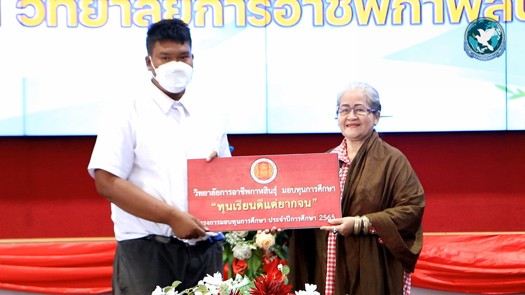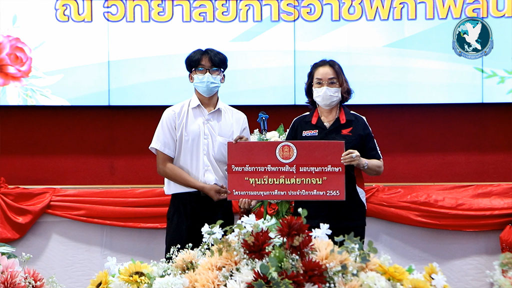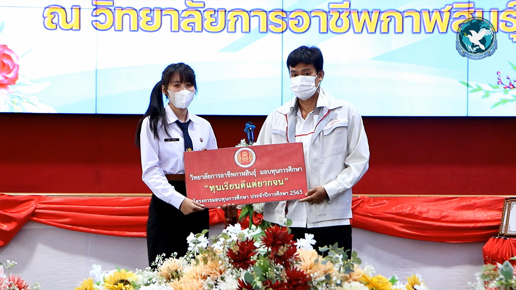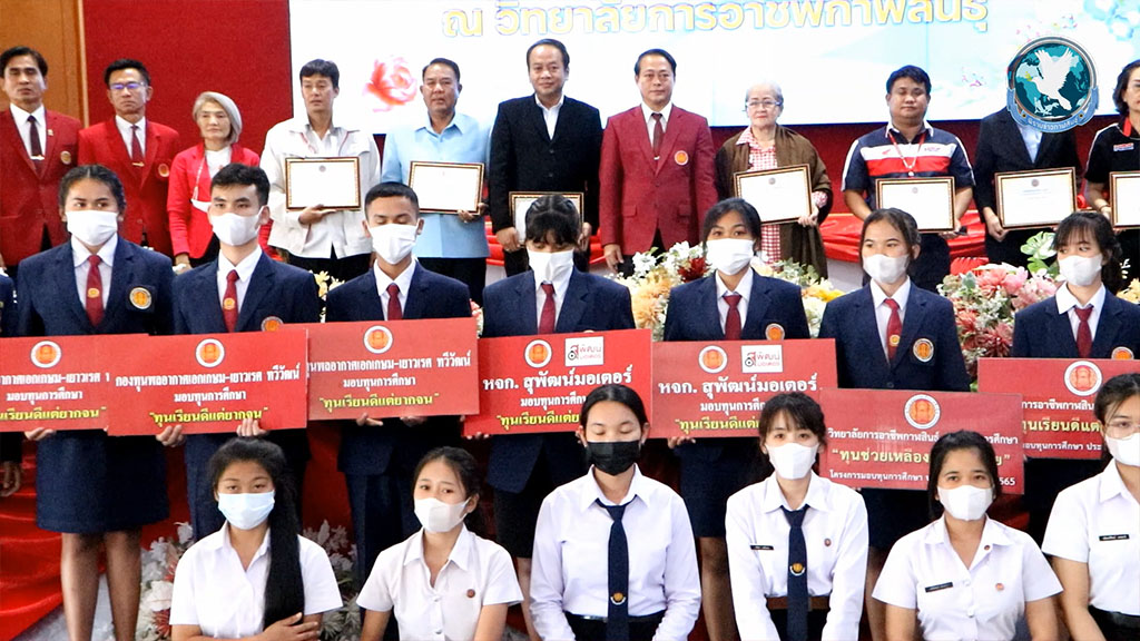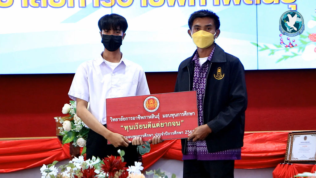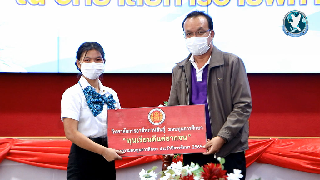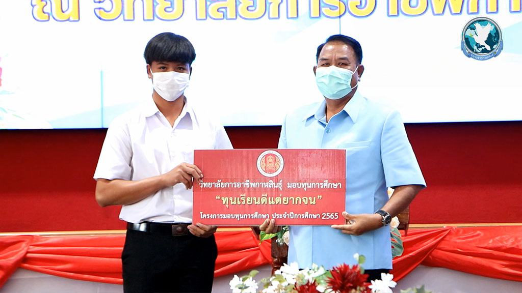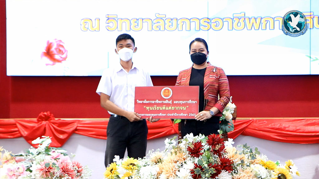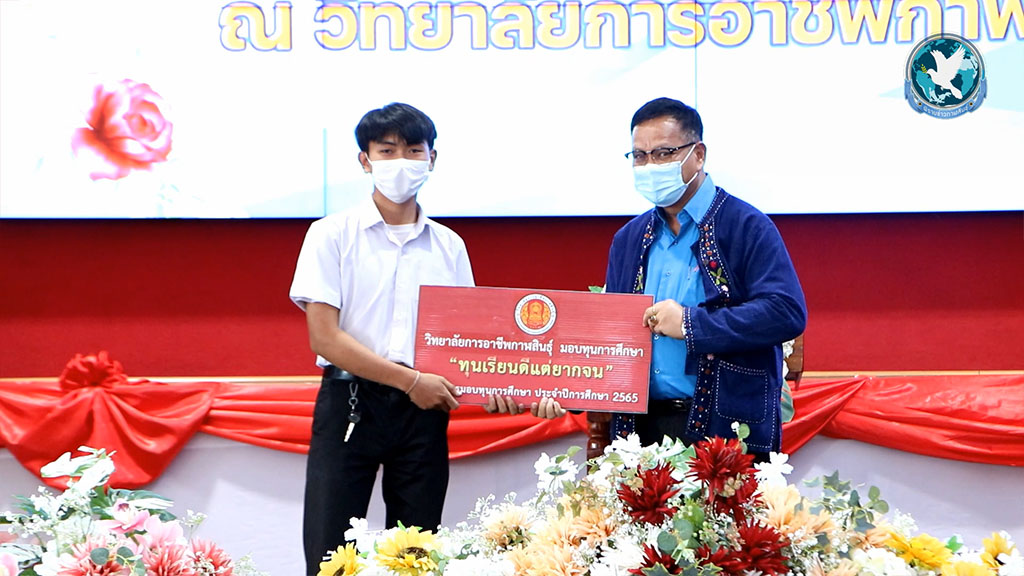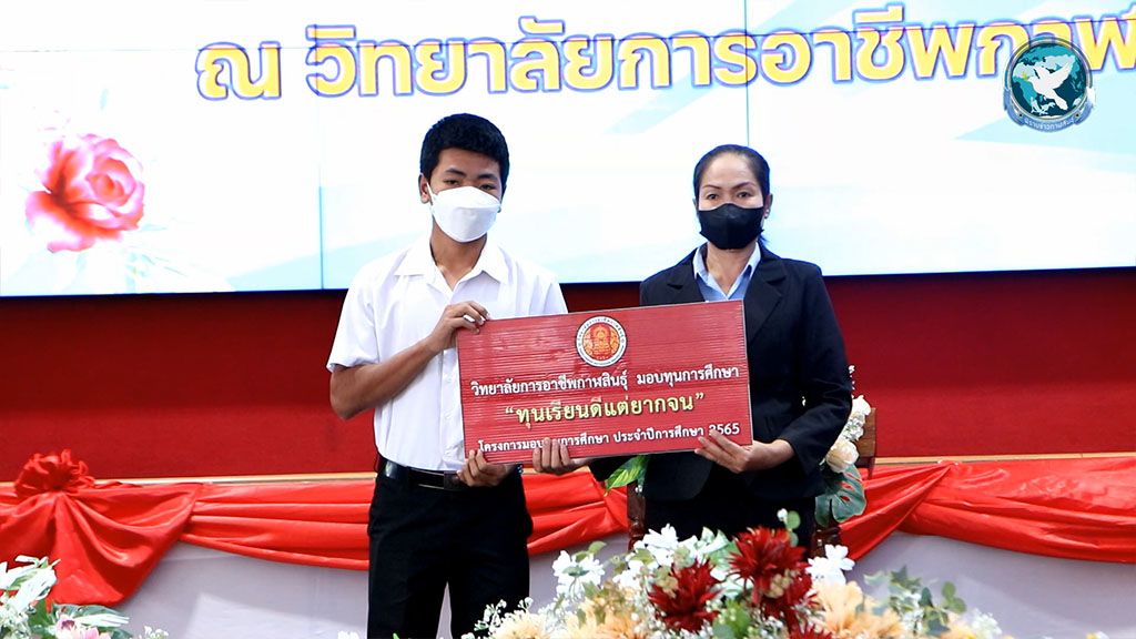 วันที่ 15 ธ.ค. 2565 (เวลา 13.00 น.) ที่หอประชุมเอนกประสงค์ วิทยาลัยการอาชีพกาฬสินธุ์ ได้จัดพิธีมอบทุนการศึกษา ประจำปีการศึกษา 2565 ที่ได้รับการสนับสนุนจากผู้มีจิตศรัทธาบริจาคจากหน่วยงานภาครัฐและเอกชน จำนวน 133 ทุนๆ ละ 1,000 บาท ให้แก่นักเรียน นักศึกษาที่เรียนดี ประพฤติดี มีวินัยใฝ่เรียน โดยมีนายอรุณ เลิศอุดมโชค ผู้อำนวยการวิทยาลัยการอาชีพกาฬสินธุ์ เป็นประธานในพิธีฯ