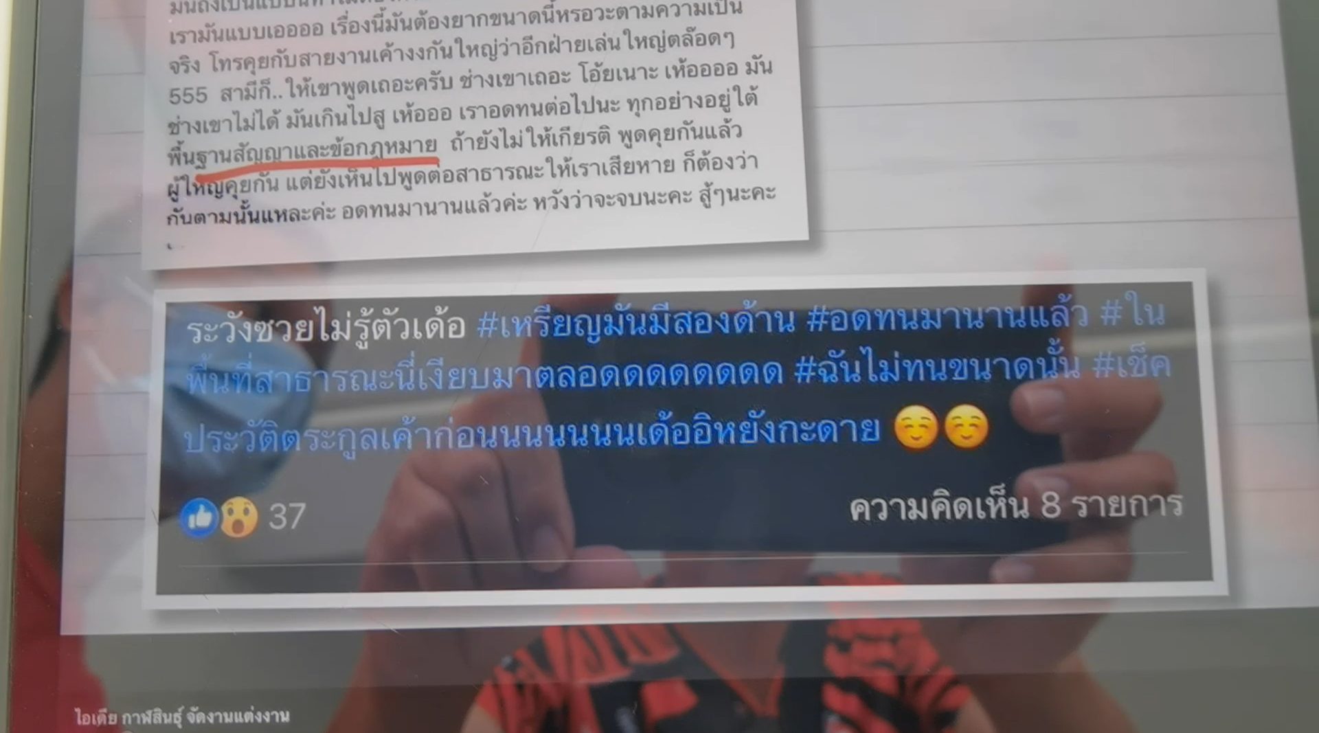 นายแสงจันทร์ กล่าวเพิ่มเติมว่า เงินก้อนนี้เป็นเงินที่เก็บมาและกู้ยืมเงินมาเพื่อสร้างบ้าน กว่าจะสะสมเงินมาได้ กว่าจะสร้างเครดิตจนธนาคารอนุมัติเงินมาได้ กว่าจะซื้อที่ดินแปลงหนึ่ง ผมเริ่มจากศูนย์ ทำมาหากินสุจริต ผมมีภาระต้องดูแลครอบครัว ดูแลหลาน ดูแลคุณแม่ ผมเป็นเสาหลักเพราะคุณพ่อเสียแล้ว ผมกลับต้องมาโดนทำแบบนี้ แล้วเงินเก็บทุกบาทที่ผมมีผมต้องเอามาแก้ไขบ้านจากที่เขาทำทิ้งไว้ เพราะอยากให้บ้านไปต่อให้ได้ ผมโดนทั้งขึ้นทั้งร่อง เงินเก็บไว้ยามจำเป็นก็ต้องเอาไปจ่าย บ้านก็เป็นสภาพตามที่เห็น โดนคดีตกเป็นจำเลย สุดท้ายแล้วทางตันบ้านถูกยึดไปอยู่ในบังคับคดี เหมือนกับผมไปเป็นหนี้คนอื่น ไปทำร้ายคนอื่น ซึ่งมันไม่ใช่ ผมอยากขอความเห็นใจ อยากให้หน่วยงาน หรือพี่ๆ สื่อมวลชนช่วยเหลือในการจัดการกับบุคคลนี้ไม่ให้เขามาทำแบบนี้กับผมอีก ผมเดือดร้อนมากๆ ขอความเห็นใจด้วย