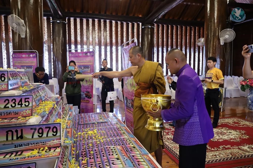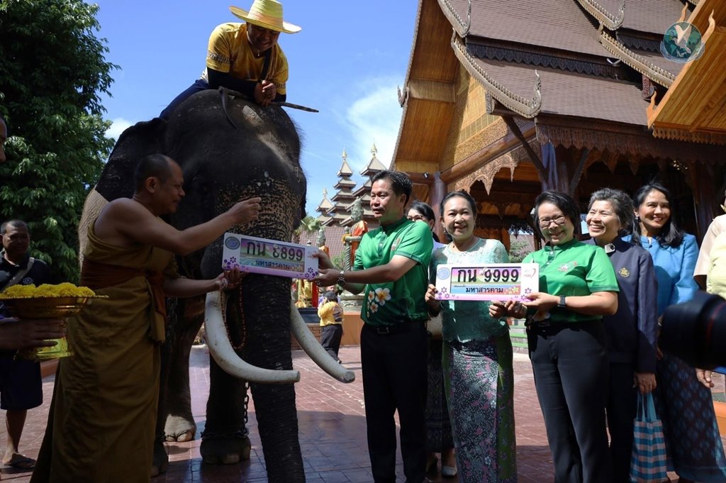 วันนี้ (11 ก.ค.66) เวลา 09.09 น. ที่ วิหารวัดพุทธวนาราม (วัดป่าวังน้ำเย็น) ต.เกิ้ง อ.เมือง จ.มหาสารคาม นายเกียรติศักดิ์ ตรงศิริ ผู้ว่าราชการจังหวัดมหาสารคาม เป็นประธานประกอบพิธีมังคลาภิเษก ในการประมูลแผ่นป้ายทะเบียนรถเลขสวยจังหวัดมหาสารคาม หมวดอักษร “กน” ก้าวหน้า ร่ำรวย ป้ายสวยสารคาม โดยมีพระครูภาวนา ชยานุสิฐ (สุริยันต์ โฆสปัญฺโญ) ผู้ช่วยเจ้าอาวาสวัดมหาชัย พระอารามหลวง ประธานสงฆ์วัดพุทธวนาราม (วัดป่าวังน้ำเย็น) เป็นผู้เจิมแผ่นทะเบียนและนั่งปรกอธิษฐานจิต เจริญน้ำพระพุทธมนต์ พร้อมการแถลงข่าวต่อสื่อมวลชน โดยมี นางพรศรี ตรงศิริ ประธานแม่บ้านมหาดไทย จังหวัดมหาสารคาม พร้อมด้วยหัวหน้าส่วนราชการ และพลายชัย ช้างไทยเพศผู้ ประจำวัดป่าวังน้ำเย็น วัย 29 ปี เข้าร่วมในพิธีเจิมแผ่นป้ายทะเบียนรถเลขสวยในครั้งนี้ด้วย