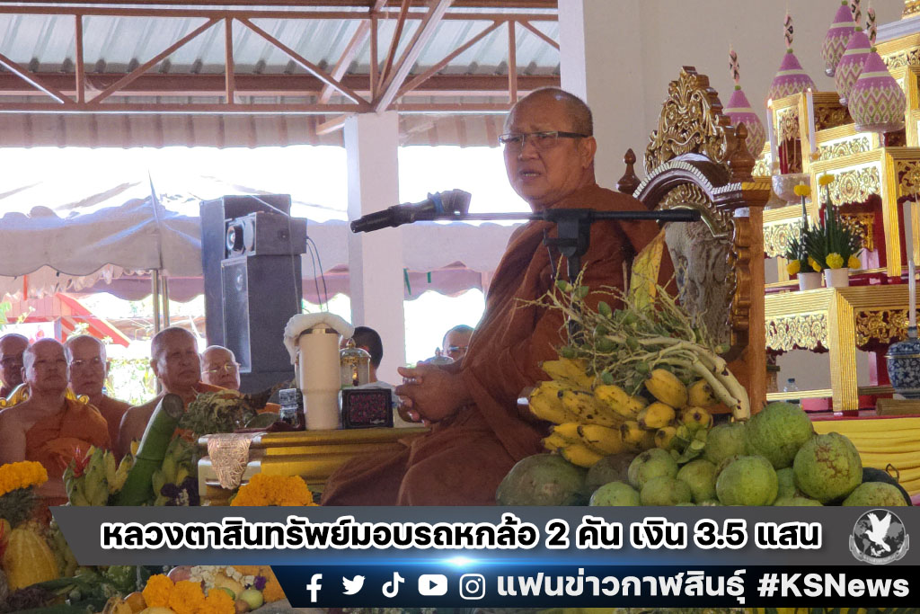 กาฬสินธุ์ หลวงตาสินทรัพย์มอบรถ 2 คัน เงิน 3.5 แสน สมทบงานทอดผ้าป่าสร้างวิทยาลัยสงฆ์