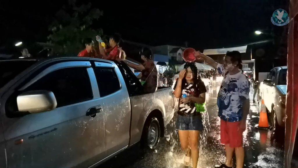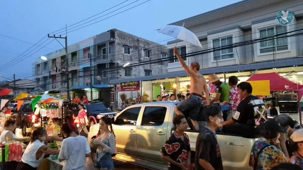 มีหนุ่มใหญ่บางคนที่ยังโสดใจดี ช่วยเติมน้ำเข้าปืนฉีดน้ำส่งให้สาวๆ ถึงรถ ไม่ต้องลงจากรถให้เสียเวลาอีกด้วย