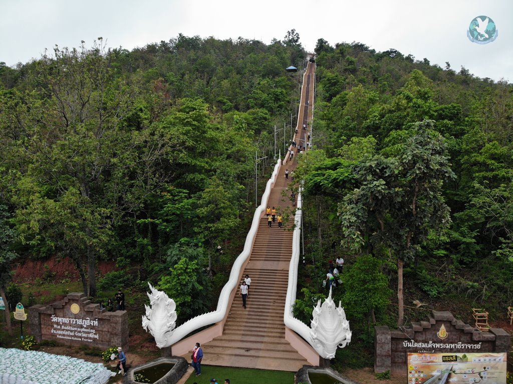 เพราะหลังจากพิธีปลูกป่าเสร็จสิ้นเรียบร้อยแล้ว พระครูสิริพัฒนนิเทศก์,ดร รักษาการเจ้าคณะอำเภอสหัสขันธ์ ได้อำนวยอวยพรให้แก่ผู้เข้าร่วมงาน เกิดมีสายฝนหลั่งรินตกลงมาเล็กน้อยแล้วหยุดตก เหมือนเป็นพรจากฟ้าส่งให้ผู้เข้าร่วมงานเดินทางกลับบ้านโดยปลอดภัย และต่อมาอีกประมาณ 20 นาที ขณะที่ทีมงานจัดสถานเก็บข้าวของเสร็จเรียบร้อยแล้ว ก็มีฝนเทลงมาอย่างหนัก จนเป็นภาพน้ำตกไหลลงมาจากยอดภูสิงห์ ลงมาตามบันไดสวรรค์ 654 ขั้น ให้ได้เห็นเป็นบุญตาตามที่เห็น ที่ถูกนำไปโพสต์เผยแพร่ในโลกโซเชียลจนคนที่เห็นต่างคอมเม้นท์ สาธุ สาธุ สาธุ รับพรออนไลน์จำนวนมาก