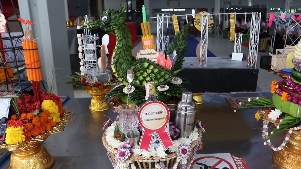 สำหรับผลการแข่งขันการประกวดจัดพานไหว้ครูปีนี้ ผลปรากฏว่า นักศึกษาสาขาการโรงแรม สามารถกวาดรางวัลชนะเลิศไปได้ทั้ง 2 ประเภท จากคะแนนเต็ม 100 คะแนน สามารถได้คะแนนสูงถึง 90-95 คะแนน มาดูกันว่าทำไมพานไหว้ครูของนักศึกษาสาขาการโรงแรม ถึงชนะใจของคณะกรรมการตัดสิน … ก็เพราะความละเอียด ประณีต ในการตกแต่งพานนี่เอง อย่างเช่นพานไหว้ครูรางวัลชนะเลิศประเภทสวยงาม ที่ใช้ใบตองตกแต่งเป็นพานบายศรีสูงกว่า 1 เมตร เป็นรูปพญานาคเลื้อยรอบตัวพานบายศรี เศียรพญานาคไปอยู่บนยอดพานอย่างสวยงาม ส่วนอีกพานที่ได้รับรางวัลชนะเลิศประเภทความคิดสร้างสรรค์ ก็ใช้ใบตองประดับตกแต่งพานเป็นรูปหงส์ ประณีตในทุกรายละเอียด สังเกตดูกลีบของขนหงส์แล้ว เชื่อว่าเด็กการโรงแรมคงจะได้รับการสั่งสอนอย่างดีจากคุณครู จึงทำให้ได้รับรางวัลชนะเลิศในที่สุด