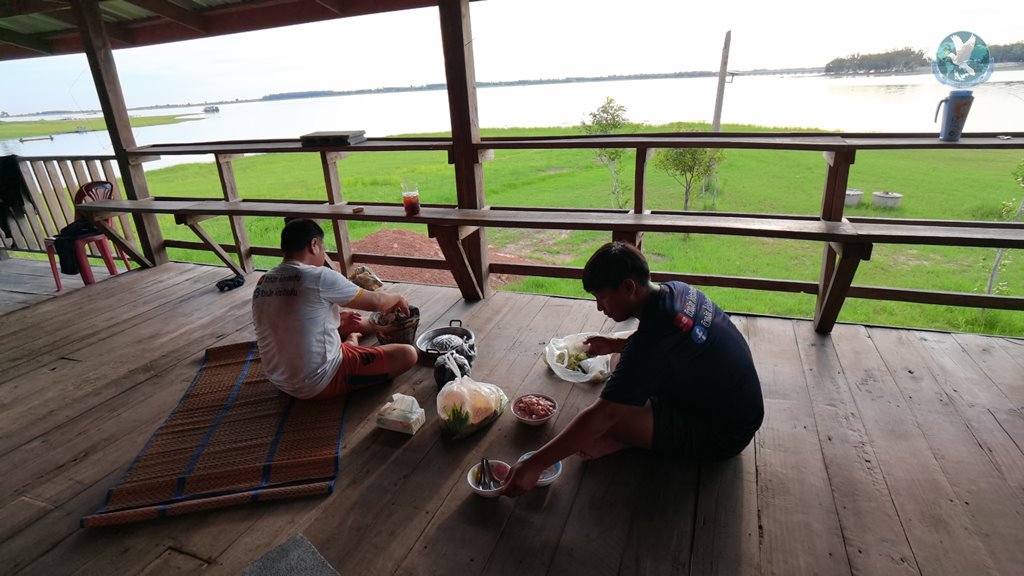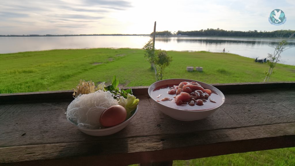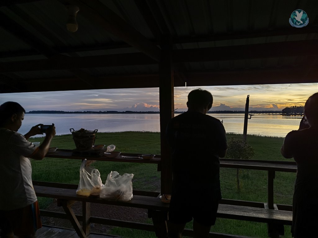 แล้วช่วงเวลาที่ทุกคนรอคอยก็มาถึง เป็นช่วงเวลาประมาณ 18.50 น. แสงอาทิตย์ได้ส่องสะท้อนกระทบผิวน้ำของเขื่อนลำปาว เกิดเป็นประกายแสงสีทองผ่องอำไพ ท้องฟ้ากลายเป็นสีส้มอมทอง ให้ชาวแก๊งค์นี้ได้ชมและถ่ายภาพสวยๆ ไปโพสต์อวดเพื่อนๆ และวันนี้ยังโชคดี ได้ชมนกคู่รัก ที่บินมาเกาะตรงยอดเสาไฟ จู๋จี๋กันทามกลางบรรยากาศยามเย็นที่พระอาทิตย์กำลังอัสดงให้ดูเป็นโบนัสของทริปนี้อีกด้วย