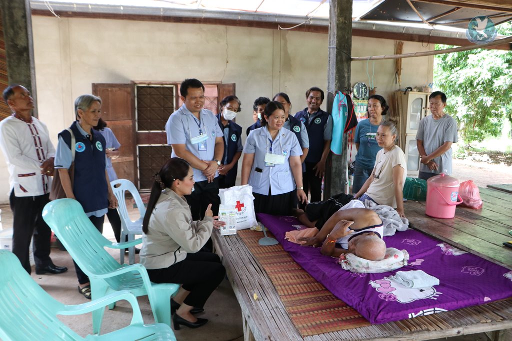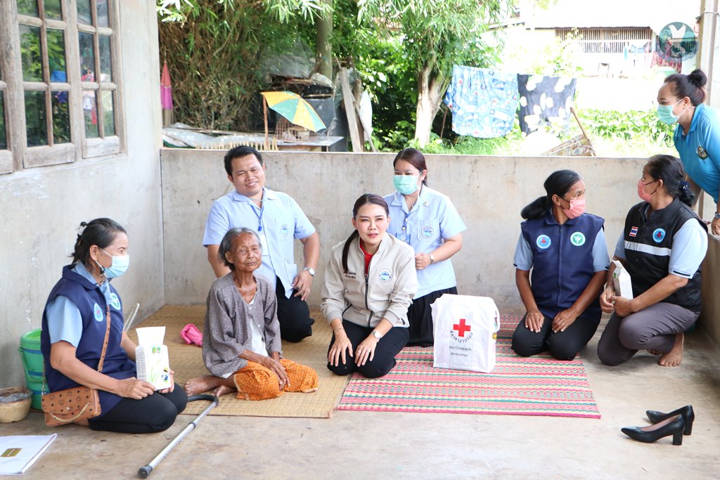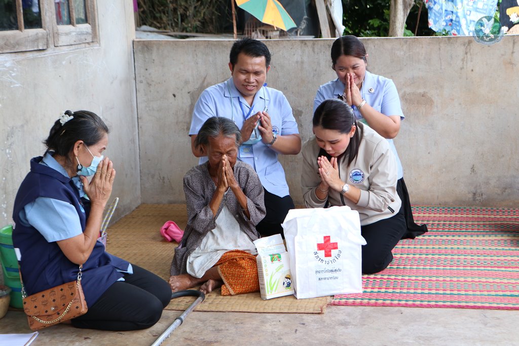 สภากาชาดไทย ส่งมอบชุดธารน้ำใจสู่ผู้สูงอายุที่ช่วยเหลือตัวเองไม่ได้ เพื่อบรรเทาทุกข์ให้กลุ่มเปราะบางในระบบแอปพลิเคชัน “พ้นภัย” แก่ประชาชนในกลุ่มผู้สูงอายุติดบ้าน ติดเตียง โรงพยาบาลส่งเสริมสุขภาพตำบลบ้านเหล่าหลวง ต.ภูดิน อ.เมืองกาฬสินธุ์ สังกัด อบจ.กาฬสินธุ์ โดยมีนางเฉลิมขวัญ หล่อตระกูล นายกองค์การบริหารส่วนจังหวัดกาฬสินธุ์ พร้อมด้วย นายสันติ กมลคร ผู้อำนวยการโรงพยาบาลส่งเสริมสุขภาพตำบลบ้านเหล่าหลวง, นายบุญถึง ยานอาษา รองนายกเทศมนตรีตำบลภูดิน, นายสุริยัญ รังหอม ผู้อำนวยการกองสาธารณสุขและสิ่งแวดล้อม, ว่าที่ร้อยตรีภาคภูมิ สุวรรณชมภู ผู้อำนวยการกองช่าง, นายก้องสนั่น ภูแสนศรี สมาชิกสภาเทศบาลตำบลภูดิน, พยาบาล และ อสม. ร่วมลงพื้นที่มอบธารน้ำใจฯ จากสภากาชาดไทยในวันนี้