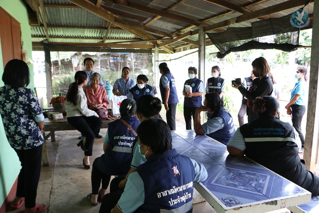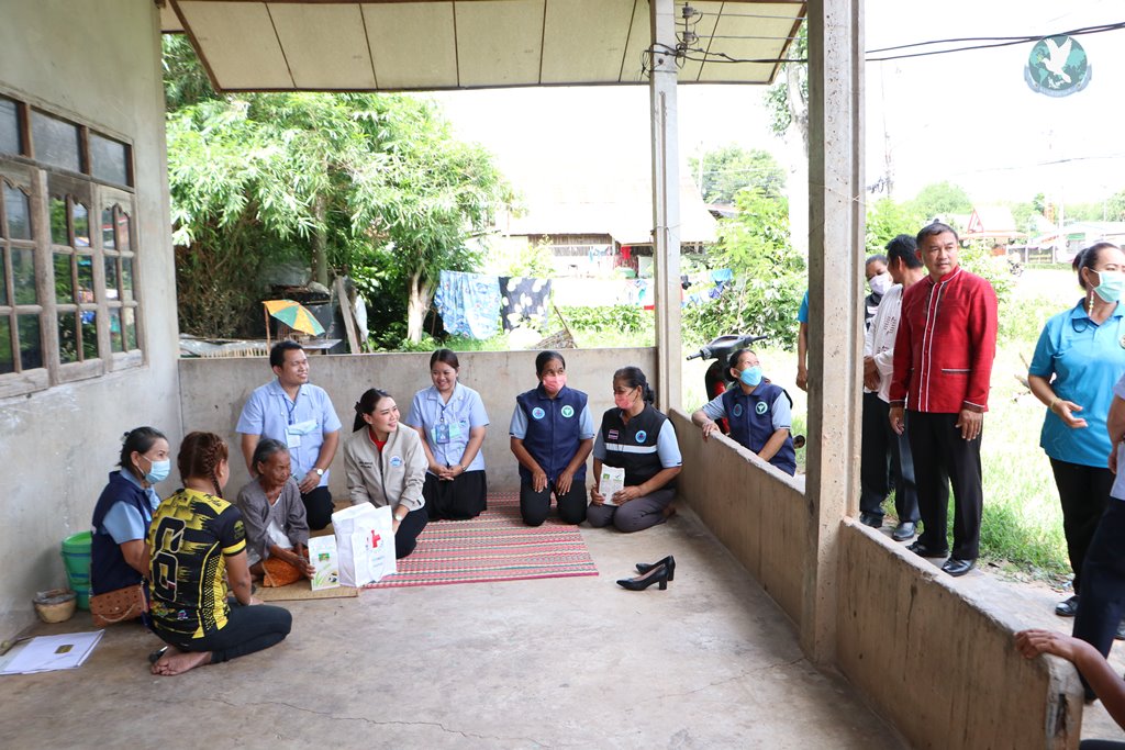 นางเฉลิมขวัญ หล่อตระกูล นายกองค์การบริหารส่วนจังหวัดกาฬสินธุ์ กล่าวให้กำลังใจกับกลุ่มเปราะบางและญาติผู้ดูแลพร้อมชื่นชมการทำงานเชิงรุกของกลุ่ม อสม. ว่า “นี่เป็นบทบาทใหม่ของ อปท. ของ อบจ.กาฬสินธุ์ ก่อนหน้านี้ รพ.สต. สังกัดกระทรวงสาธารณสุข แต่ปัจจุบันนี้ได้กระจายอำนาจคืนให้ท้องถิ่น ซึ่ง อบจ.เป็นท้องถิ่นขนาดใหญ่ ได้รับถ่ายโอนภารกิจนี้ ต่อไปเราจะมีหลายเรื่องดีๆ เข้ามา เอาเทคโนโลยีมาช่วย เพื่อให้ระบบการบริการปฐมภูมิ อย่างบางคนลูกหลานไม่ได้อยู่ด้วย ให้คนเหล่านั้นได้เข้าถึงบริการสาธารณสุขที่มีประสิทธิภาพ ซึ่งช่วงนี้ยังเป็นช่วงแรก ๆ หลังจากมีการถ่ายโอน แต่ปีหน้าเราจะวางแผนระบบสุขภาพให้เป็นรูปธรรมมากขึ้น ซึ่งหลังจากลงพื้นที่ก็ได้มาเห็นหลาย ๆ อย่าง ทั้งตัวอาคารสถานที่และบริบทของชุมชน มาเห็นเคสของผู้ป่วย เห็นการทำงานของกลุ่ม อสม. ก็จะนำไปออกแบบระบบสุขภาพว่าตำบลนี้ควรจะเป็นอย่างนี้ จะไม่ได้ระบบเดิมที่กว้างเกินไป ซึ่ง รพ.สต. ทั้ง 51 แห่งในจังหวัดกาฬสินธุ์ที่ได้ถ่ายโอนมาสังกัด อบจ.กาฬสินธุ์ จะเป็น รพ.สต.โฉมใหม่ ที่ยกระดับการให้บริการด้านสุขภาพแก่คนในชุมชนอย่างมีประสิทธิภาพสูงสุด