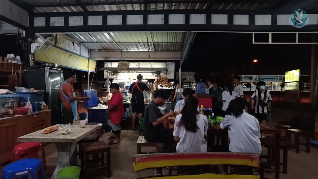 ด้านน้องพัชชา (เสื้อเขียว 2 ดาว) นักศึกษาวิทยาลัยนาฎศิลปกาฬสินธุ์ บอกว่า ที่มากินร้านนี้สัปดาห์ละเกือบ 5 วัน เพราะร้านนี้อร่อยถูกปาก พ่อค้าแม่ค้าก็น่ารักด้วยแล้วก็ได้เยอะ ก็อยากให้ทุกคนมากินเตี๋ยวที่ร้านนี้ อยู่ตรงข้ามวิทยาลัยการอาชีพกาฬสินธุ์ (เพื่อนๆ แซวว้าร้านนี้มีเพลงให้ฟังด้วย)