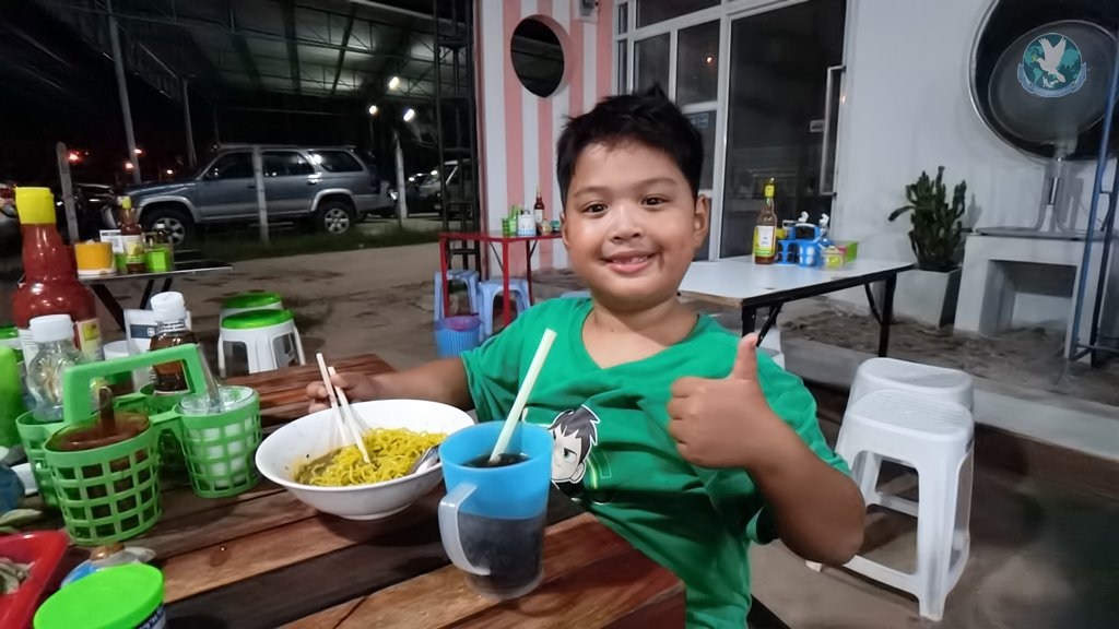 ส่วนน้องอังเปา เล่าไปด้วยกินไปด้วย บอกว่า ร้านนี้อร่อยมากครับ ให้เยอะ ที่ชอบกินประจำก็จะเป็นเส้นเล็ก แต่วันนี้ที่กินเส้นหมี่เหลืองก็เพราะวันนี้หิวหมี่เหลืองครับ อิ่มมาก 20 บาทเอง อย่อย ๆ มากิน ๆ ร้านนี้