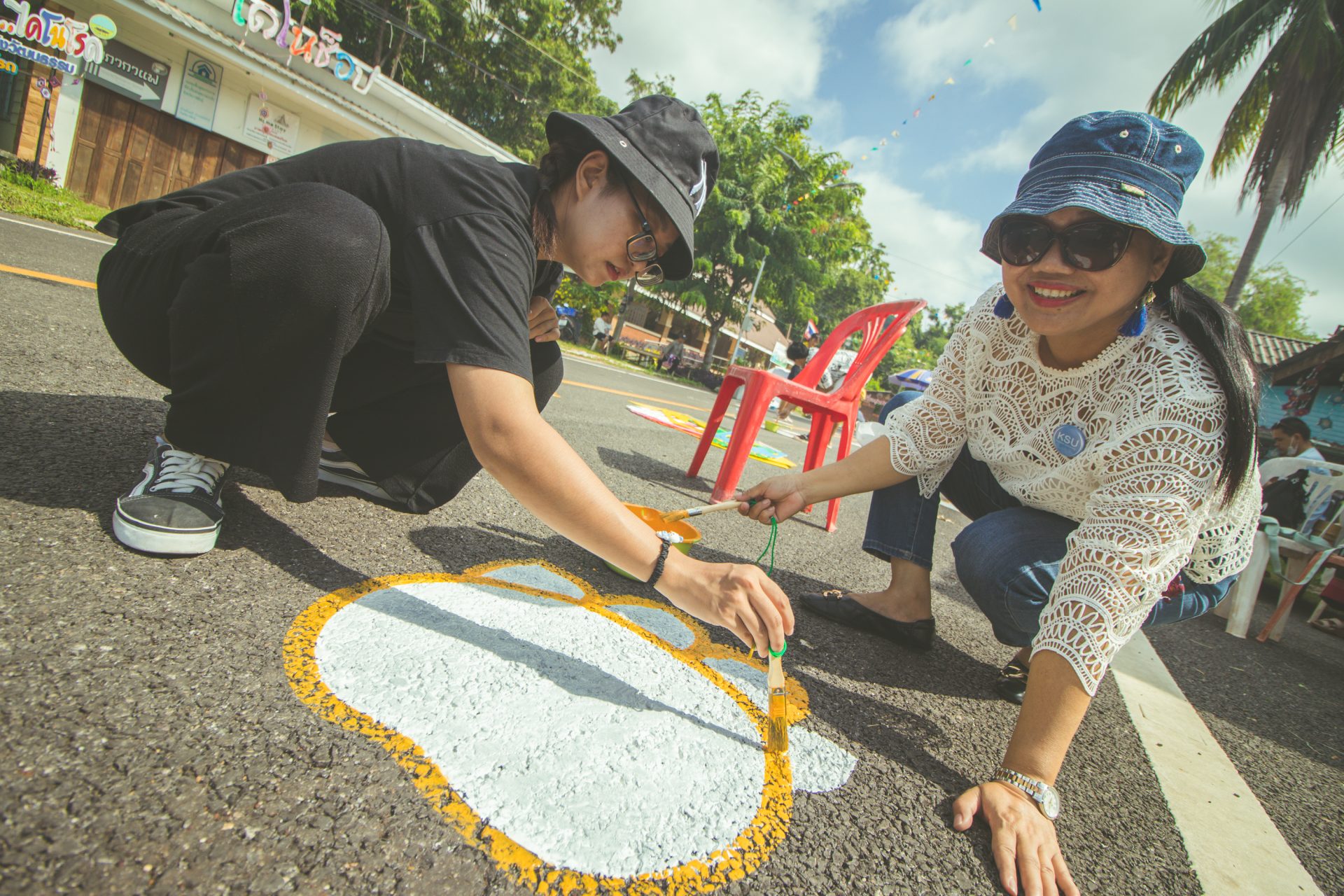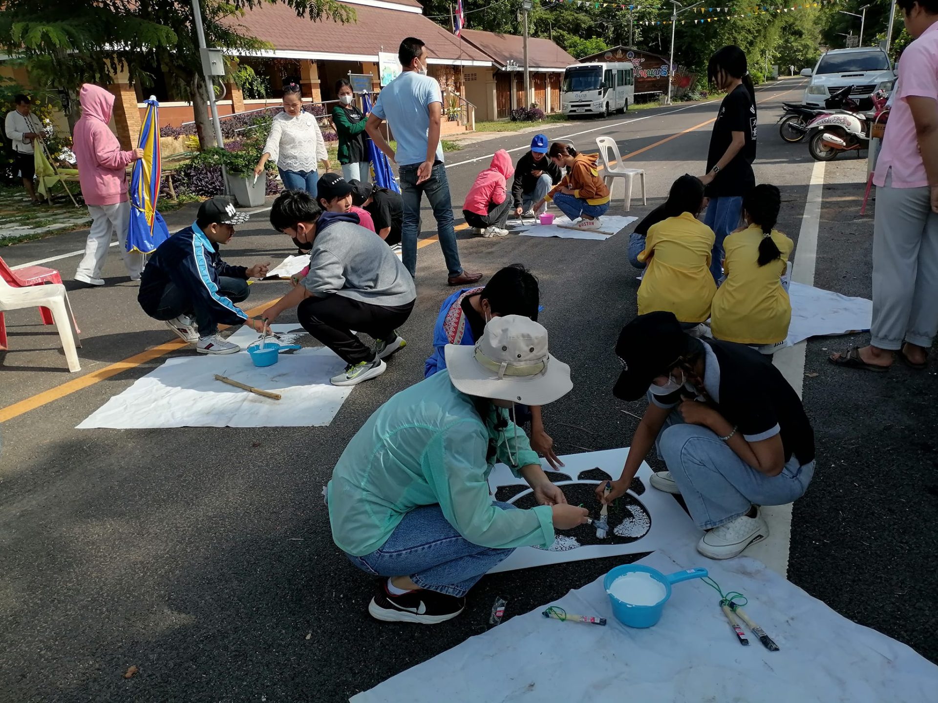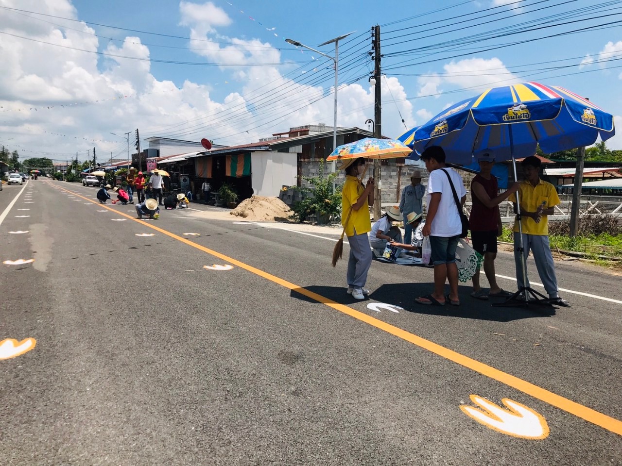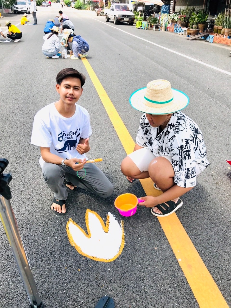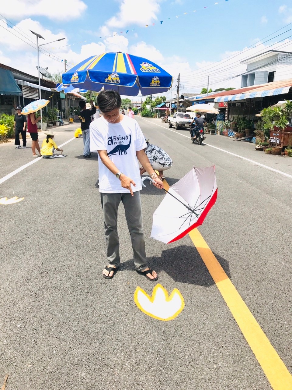 เมื่อวันที่ 1 ก.ค. 2566 ที่ผ่านมา ภาครัฐและภาคเอกชน ได้ร่วมกันจัดกรรมส่งเสริมการท่องเที่ยวของชุมชน ณ อำเภอสหัสขันธ์ ซึ่งเป็นอำเภอที่โดดเด่นเรื่องการท่องเที่ยวของจังหวัดกาฬสินธุ์ โดยหลังจากช่วงเช้าที่ทุกคนได้เข้าร่วมกิจกรรม “นุ่งซิ่นนั่งสาด ตักบาตร 9 วัด” เรียบร้อยแล้ว หลังจากนั้นคณะจิตอาสาที่เข้าร่วมกิจกรรมปรับปรุงภูมิทัศน์รอบข้าง @ถนนไดโนโรด ได้ร่วมกันสร้างรอยตีนไดโนเสาร์ จำนวนกว่า 300 รอย โดยคณะจิตอาสา ร่วมกัน “ทาสีรอยตีนไดโนเสาร์” บนถนนสายบุญไดโนโรด ระยะทางกว่า 800 เมตร