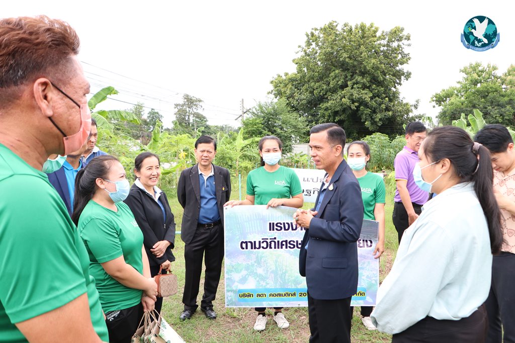 สำหรับในส่วนของ บริษัท ลดา คอสเมติกส์ฯ พนักงานในโรงงานได้ระดมความคิดเห็นร่วมกันว่า อยากจะปลูกพืชผักสวนครัวที่มีความจำเป็นในชีวิตประจำวันไว้บริโภค ไม่ว่าจะเป็น กล้วย ที่ปลูกง่าย ไม่ต้องดูแลให้ยุ่งยาก สามารถใช้บริโภคได้ทั้งปลีกล้วย ลำต้นก็สามารถนำเอามาหมักเป็นปุ๋ยจุลินทรีย์ได้อีก ส่วนพืชผักสวนครัวที่ปลูกก็ประกอบไปด้วย ผักสะระแหน่, ต้นแมงลัก, พริก, ข่า, ตะใคร้, พักทอง เป็นต้น โดยผลผลิตที่ได้ในสวน ก็นำมาแจกจ่ายให้พนักงานในโรงงานฯ สามารถลดค่าใช้จ่ายรายเดือนได้ตั้งแต่ 500-1,000 บาทต่อเดือน หากผลผลิตออกเยอะก็ยังนำไปแจกจ่ายให้กับชาวบ้านในชุมชนข้างๆ ได้รับประทานฟรีๆ อีกด้วย