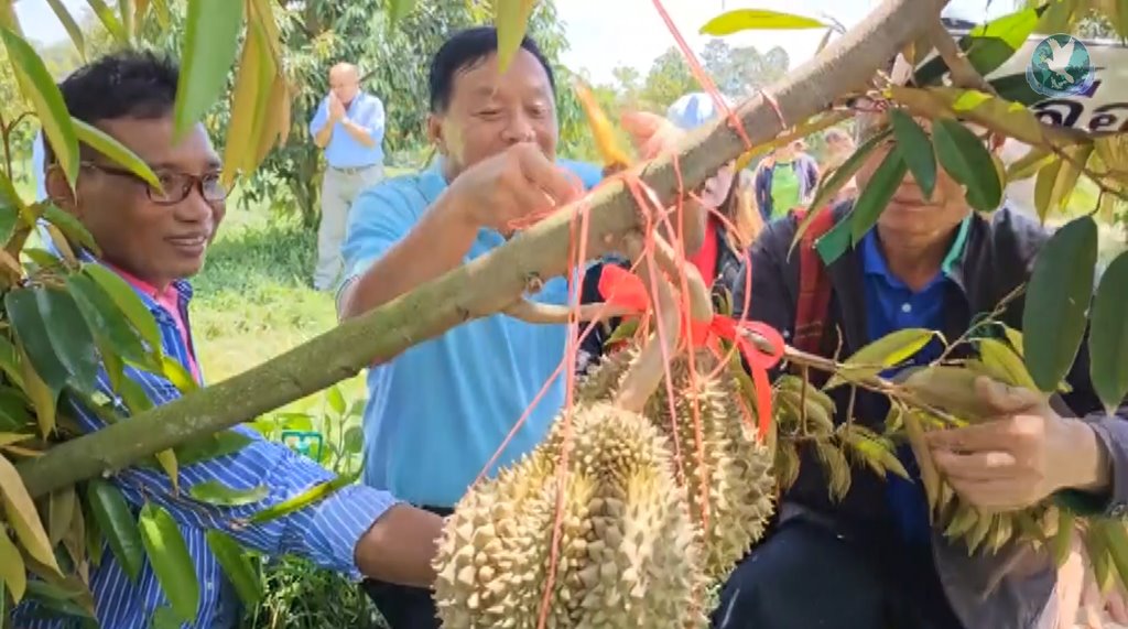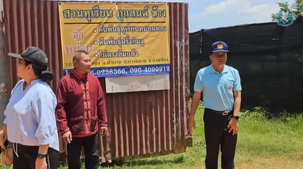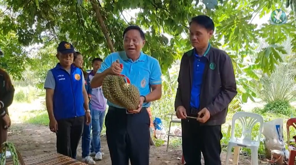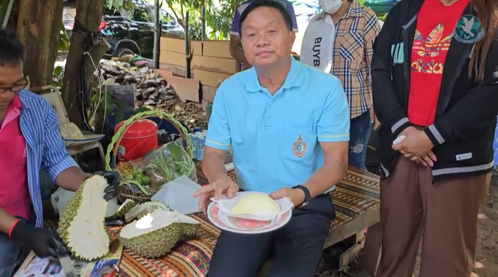 นายศุภศิษย์ กอเจริญยศ ผู้ว่าราชการจังหวัดกาฬสินธุ์ พร้อมด้วย นายสันติภาพ โทนหงส์สา เกษตรจังหวัดกาฬสินธุ์ นายเอกรัฐ มิสา นายอำเภอยางตลาด นางสาวอัจฉรา ยนต์ชัย นายกเทศมนตรีตำบลบัวบาน และกำนันผู้ใหญ่บ้านในเขตพื้นที่ตำบลบัวบาน ลงพื้นที่เยี่ยมชมสวนทุเรียนภูแลนด์ช้าง (ทุเรียนไดโนเสาร์) ตั้งอยู่ที่ หมู่ที่ 3 บ้านแดง ต.บัวบาน อ.ยางตลาด จ.กาฬสินธุ์ ซึ่งมีนายวีระชัย สุดชะเนย์ เป็นเจ้าของสวน โดยเป็นสวนทุเรียนแห่งที่ 2 ของจังหวัดกาฬสินธุ์ พร้อมได้ฤกษ์ดีตัดทุเรียนที่ได้จองไว้ในชื่อท่านผู้ว่าฯ ซึ่งเป็นทุเรียน “ไดโนเสาร์” ลูกแรกของปี โดยได้รับเกียรติจากพ่อเมืองกาฬสินธุ์ นายศุภศิษย์ กอเจริญยศ ผู้ว่าราชการจังหวัดกาฬสินธุ์ เป็นผู้ตัดพร้อมชิมผลผลิตทุเรียนสุกคาปิง (คาต้น)
