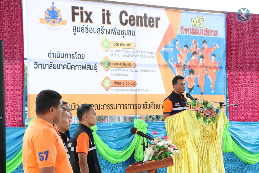 ด้านนายประดิษฐ์ ญาณประเสริฐ ผู้อำนวยการวิทยาลัยเทคนิคกาฬสินธุ์ กล่าวว่า สำนักงานคณะกรรมการการอาชีวศึกษา ได้เล็งเห็นถึงความสำคัญของการสร้างองค์ความรู้ให้กับชุมชน โดยการดำเนินงานพัฒนารูปแบบและยกระดับศูนย์ซ่อมสร้างเพื่อชุมชนของวิทยาลัยเทคนิคกาฬสินธุ์ เป็นการทำงานร่วมกับชุมชน ซึ่งเป็นการสร้างเครือข่ายทางการศึกษา