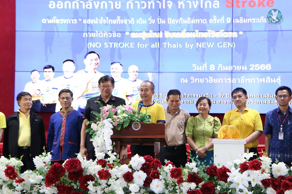 นายแพทย์วิทยา วัฒนเรืองโกวิท นายแพทย์สาธารณสุขจังหวัดกาฬสินธุ์ กล่าวว่า กิจกรรม Kick Off “รวยสุขภาพ” ออกกำลังกาย ก้าวท้าใจ ห่างไกล Stroke ตามโครงการ แสงนำใจไทยทั้งชาติ เดิน วิ่ง ปั่น ป้องกันอัมพาต ครั้งที่ 9 เฉลิมพระเกียรติ จังหวัดกาฬสินธุ์ จัดขึ้นเพื่อส่งเสริมการดูแลสุขภาพของประชาชน ให้หันมาใส่ใจและให้ความสำคัญการออกกำลังกายอย่างจริงจัง