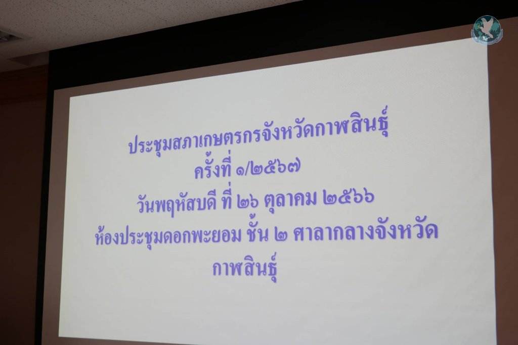 วันที่ 26 ตุลาคม 2566 เวลา 09.00 น. ณ ห้องประชุมดอกพะยอม ศาลากลางจังหวัดกาฬสินธุ์ ชั้น 2 นายวุฒิพงษ์ พลอยวิเลิศ ประธานสภาเกษตรกรจังหวัดกาฬสินธุ์ เป็นประธานการประชุมสภาเกษตรกรจังหวัดกาฬสินธุ์ ครั้งที่ 1/2567 เพื่อพิจารณาแผนยุทธศาสตร์กาฬสินธุ์เมืองสีเขียวอัจฉริยะ(Kalasin Smart Green City) ประจำปีงบประมาณ พ.ศ.2567 โดยที่ประชุมสภาฯ มีมติเห็นชอบแผนยุทธศาสตร์กาฬสินธุ์เมืองสีเขียวอัจฉริยะ ประจำปี 2567 ยกระดับอาชีพเกษตรสู่การเกษตรยุคใหม่ ด้วยนโยบายขับเคลื่อนกาฬสินธุ์สู่ “เมืองเกษตรอัจฉริยะ และเมืองยุวเกษตรกร” ต้นแบบประเทศภายในปี 2567