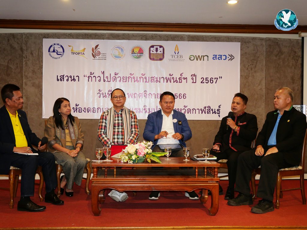 โดยกิจกรรมวันแรก (21 พ.ย. 2566) เวลา 13.00 น. ที่ห้องดอกเกตุ โรงแรมริมปาว อ.เมือง จ.กาฬสินธุ์ เป็นพิธีลงนามบันทึกข้อตกลงความร่วมมือ (MOU) การส่งเสริมพัฒนาอุตสาหกรรมการท่องเที่ยวและบริการให้เติบโตสอดคล้องกับนโยบายและแผนพัฒนาเศรษฐกิจแห่งชาติ ในการพัฒนาทักษะสำคัญที่ตลาดแรงงานต้องการ ของสถานประกอบการในอุตสาหกรรมการท่องเที่ยวและบริการ กับ สมาคมส่งเสริมธุรกิจการท่องเที่ยวจังหวัดกาฬสินธุ์, สภาอุตสาหกรรมการท่องเที่ยวจังหวัดกาฬสินธุ์, สมาพันธ์ธุรกิจการท่องเที่ยวภูมิภาคแห่งประเทศไทย (TFOPTA), มหาวิทยาลัยกาฬสินธุ์, มหาวิทยาลัยขอนแก่น, มหาวิทยาลัยมหาสารคาม, วิทยาลัยเทคนิคกาฬสินธุ์, วิทยาลัยการอาชีพกาฬสินธุ์, วิทยาลัยนาฎศิลปกาฬสินธุ์ และมหาวิทยาลัยราชภัฏมหาสารคาม โดยมีว่าที่ร้อยตรี เอนก นุรักษ์ ประธานสมาคมสมาพันธ์ธุรกิจการท่องเที่ยวส่วนภูมิภาคแห่งประเทศไทย, น.ส.ชนิดา ตั้งเทวนนท์ ประธานสภาอุตสาหกรรมการท่องเที่ยวจังหวัดกาฬสินธุ์ และ ดร.วัชรพงศ์ ชาวสามทอง นายกสมาคมส่งเสริมธุรกิจการท่องเที่ยวจังหวัดกาฬสินธุ์ ร่วมลงนามใน MOU หลังจากนั้นเป็นการเปิดเวทีเสวนา “ก้าวไปด้วยกันกับสมาพันธ์ฯ ปี 2567” โดยมีนายสัญชัย ธรรมโหร ผู้อำนวยการภูมิภาคภาคตะวันออกเฉียงเหนือ การท่องเที่ยวแห่งประเทศไทย พร้อมคณะ ร่วมแลกเปลี่ยนประสบการณ์และความร่วมมือในการพัฒนาธุรกิจการท่องเที่ยวในอนาคต