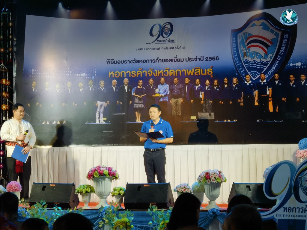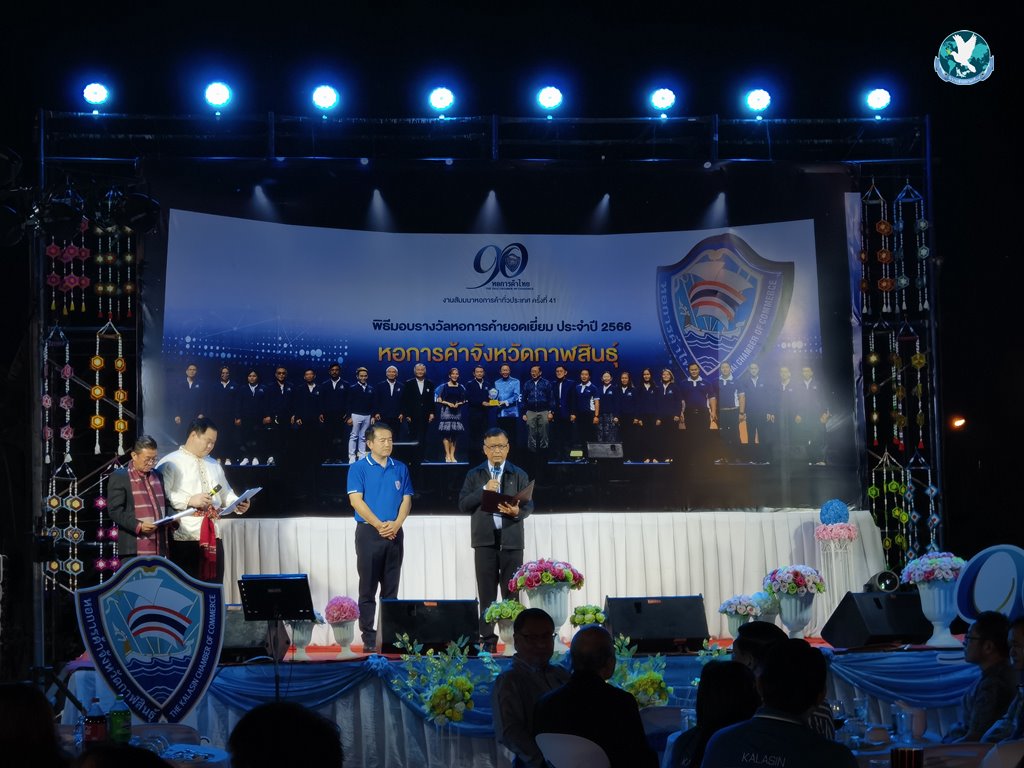 โดยหอการค้าจังหวัดกาฬสินธุ์ ได้เข้ารับรางวัลหอการค้ายอดเยี่ยม ประจำปี 2566 ในการสัมมนาหอการค้าทั่วประเทศ ครั้งที่ 41 ระหว่างวันที่ 17-19 พฤศจิกายน 2566 ที่ผ่านมา ณ ภิรัชฮอลล์ 1-3 ชั้น 2 ศูนย์นิทรรศการและการประชุมไบเทค (BITECH) กรุงเทพมหานคร ถือเป็นรางวัลอันทรงเกียรติทรงคุณค่าในรอบ 30 กว่าปีของการก่อตั้งหอการค้าจังหวัดกาฬสินธุ์ ซึ่งสร้างชื่อเสียงให้จังหวัดกาฬสินธุ์ได้เป็นอย่างมาก