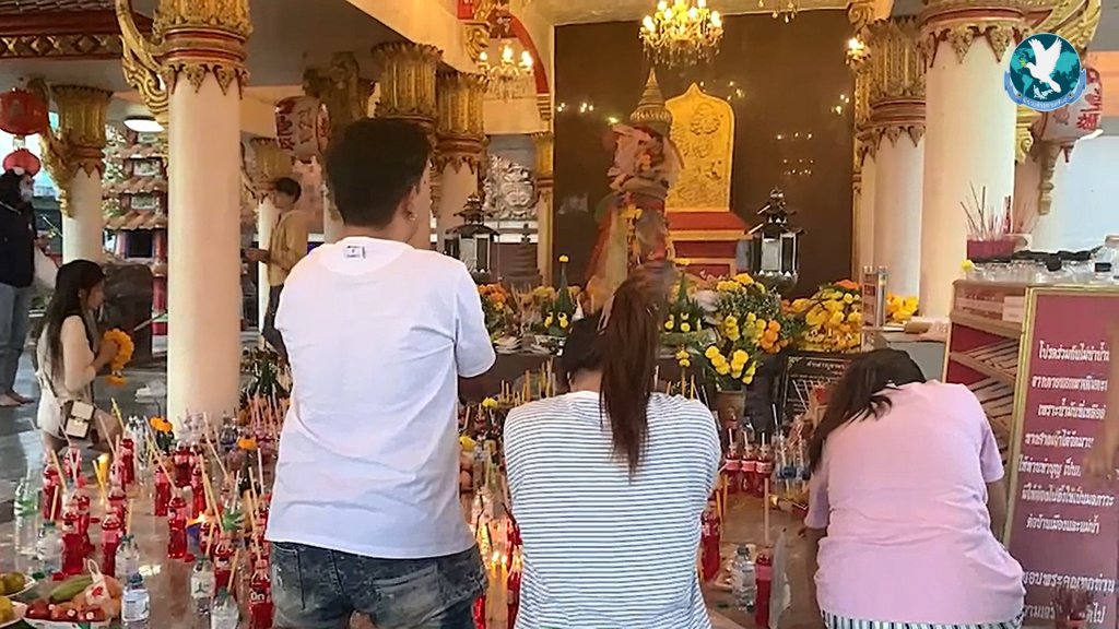 โดยประชาชนได้นำเครื่องเซ่นไหว้ ประกอบด้วย เป็ดไก่ ผลไม้ 5 อย่าง เหล้า น้ำชา น้ำแดง น้ำดื่ม ธูป 9 ดอก ของหวาน 9 ชนิด พวงมาลัย 2 พวง ตามแต่ความเหมาะสม บางคนยังได้สั่นเซียมซีเสี่ยงทาย เพราะมีความเชื่อเรื่องของการเสี่ยงเซียมซี เป็นรูปแบบการทำนายที่เก่าแก่ ศักดิ์สิทธิ์ และสืบทอดกันมา อย่างยาวนานโดยคำทำนาย จะมีสัมผัสไพเราะเป็นเอกลักษณ์เฉพาะตัว หากผู้เสี่ยงเซียมซีอธิษฐานจิตอย่างแน่วแน่ จะทำให้ผลแห่งโชคชะตา ปรากฏขึ้นอย่างแม่นยำ เมื่อจิตพร้อมแล้ว ก็ลงมือเสี่ยงเซียมซี โดยหยิบกระบอกเซียมซีมาเขย่า จนกว่าติ้วอันใดอันหนึ่งจะตกสู่พื้น และหมายเลขที่ปรากฏบนติ้วนั้น จะเป็นคำทำนายโชคชะตาของผู้เสี่ยงเซียมซี