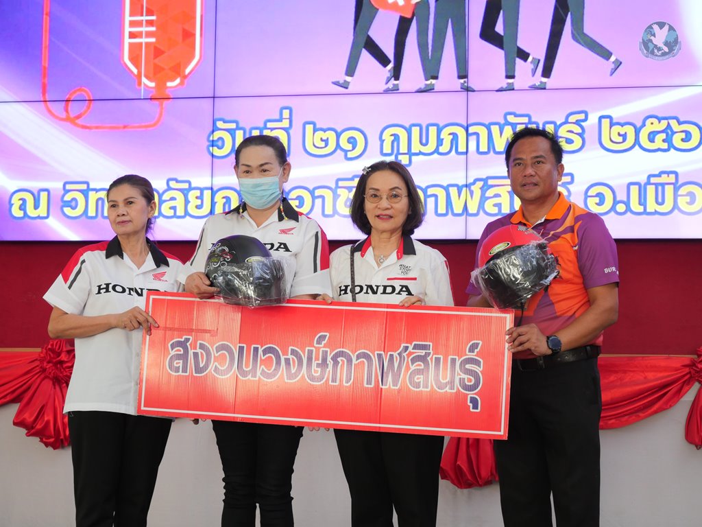 วันที่ 21 ก.พ. 2567 สำนักงานเหล่ากาชาดจังหวัดกาฬสินธุ์ ร่วมกับ โรงพยาบาลกาฬสินธุ์ วิทยาลัยการอาชีพกาฬสินธุ์ การไฟฟ้าส่วนภูมิภาคสาขากาฬสินธุ์ และภาคีเครือข่าย จัดโครงการบริจาคโลหิต ให้เลือด ให้ชีวิต ช่วยเหลือเพื่อนมนุษย์ ประจำปี 2567 ณ หอประชุมอเนกประสงค์วิทยาลัยการอาชีพกาฬสินธุ์ โดยมีผู้ใจบุญจาก หจก.สงวนวงษ์กาฬสินธุ์ นำหมวกกันน็อคมามอบให้ผู้บริจาคโลหิต จำนวน 20 ใบ โดยปีนี้มีผู้เข้าร่วมบริจาคโลหิต จำนวนทั้งสิ้น 77 คน