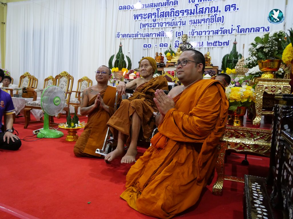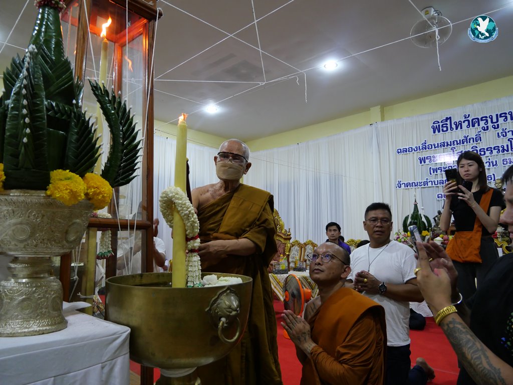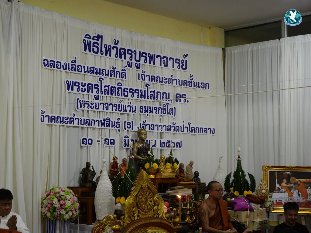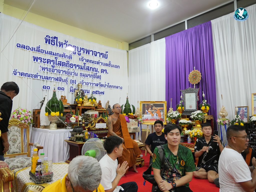 หลังจากนั้นวันที่ 11 มิ.ย. 2567 ได้ทำพิธีไหว้ครูบูรพาจารย์ ฉลองเลื่อนสมณศักดิ์เป็นพระครูสัญญาบัตรเจ้าคณะตำบลชั้นเอก จต.ชอ. พระครูโสตถิธรรมโสภณ,ดร.(พระอาจารย์แว่น ธมฺมรกฺขิโต) โดยพระครูโสตถิธรรมโสภณ, ดร. ได้แจกวัตถุมงคลให้สาธุชนที่มาร่วมพิธีที่ต่อแถวรอรับวัตถุมงคลจากมือพระครูฯ จำนวนมาก