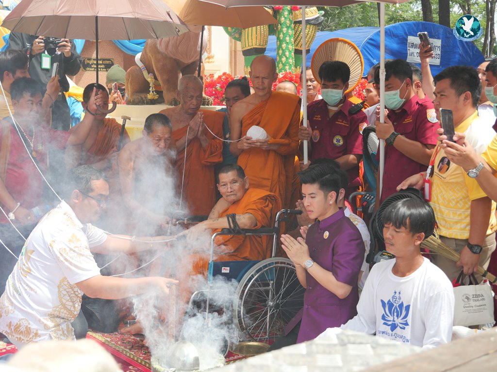 ต่อมาช่วงบ่ายเวลา 13.39 น. ได้ประกอบพิธีพุทธาภิเษกฯ โดยมีพระเกจิอาจารย์ชื่อดังที่มีชื่อเสียงมากที่สุดของไทยในขณะนี้เข้าร่วมพิธีคือองค์หลวงปู่ศิลา สิริจันโท เจ้าอาวาสวัดพระธาตุหมื่นหิน ซึ่งเป็นพระสหธรรมมิกของ“หลวงปู่เวิน” แห่งวัดบูรพาโคกเครือ ผู้เก่งด้านกรรมฐาน เพชรน้ำดีเมืองกาฬสินธุ์