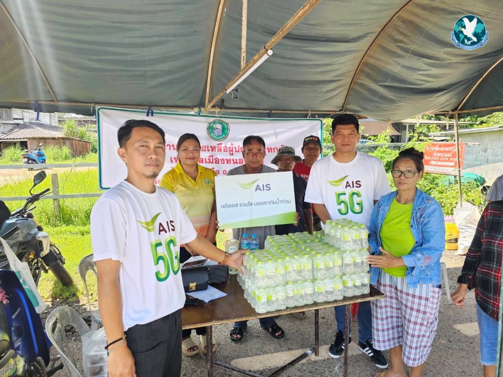 จากสถานการณ์ฝนตกหนักต่อเนื่อง และปริมาณแม่น้ำโขงหนุนสูง ล้นตลิ่ง ทำให้เกิดน้ำท่วม ประชาชนได้รับความเดือดร้อนเป็นจำนวนมาก ในหลายอำเภอของจังหวัดหนองคาย ที่อยู่ติดริมฝั่งแม่น้ำโขง ซึ่งก่อนหน้านี้ทีมงาน AIS ภาคอีสานได้เฝ้าระวังและเตรียมความพร้อมดูแลเครือข่ายสื่อสารทั้งมือถือและเน็ตบ้านมาแล้วตั้งแต่ช่วงของการเกิดอุทกภัยในภาคเหนือช่วงที่ผ่านมา ดังนั้นเมื่อเริ่มได้รับผลกระทบ AIS จึงพร้อมส่งมอบความช่วยเหลือทันที ประกอบด้วย