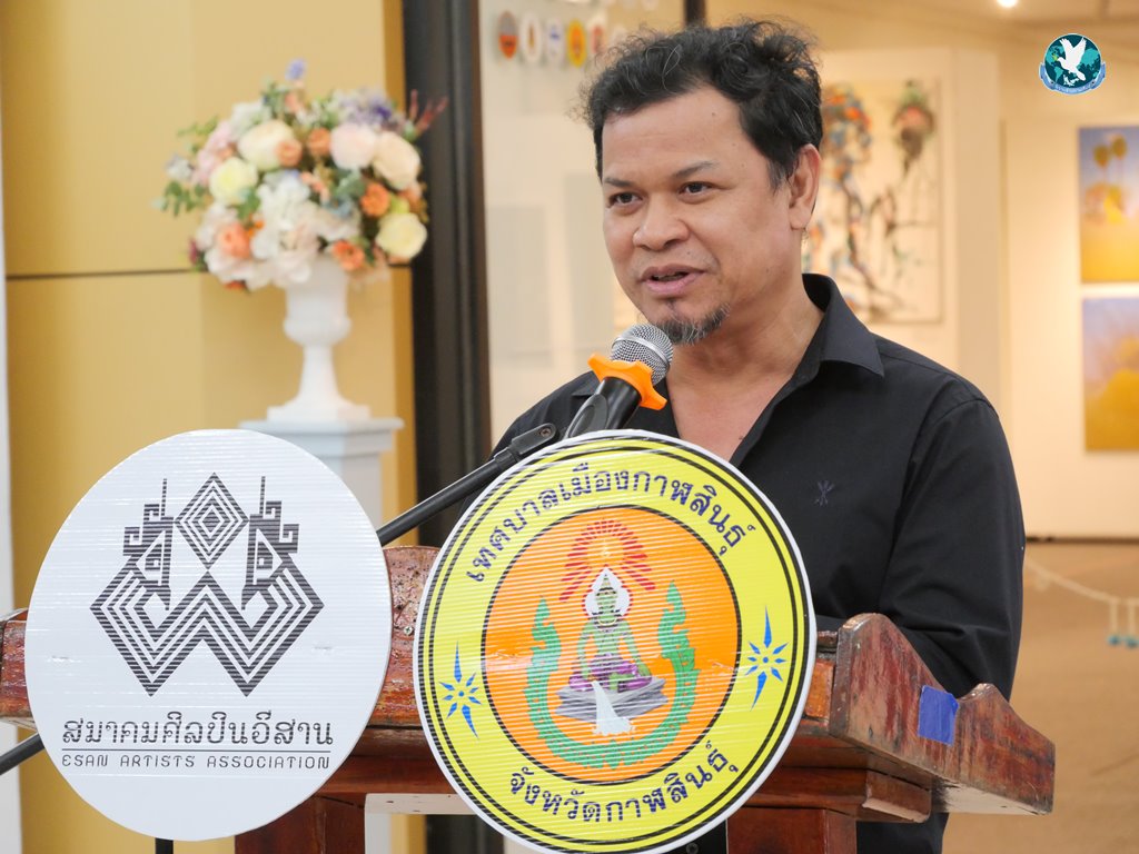 ดร.ศักชัย อุทธิโท นายกสมาคมศิลปินอีสาน กล่าวว่า จากการอบรมเชิงปฏิบัติการสร้างสรรค์ Workshop ด้านศิลปกรรม ภายใต้โครงการนี้ ณ โรงแรมริมปาว จ.กาฬสินธุ์ และแขวงจำปาสัก สาธารณรัฐประชาธิปไตยประชาชนลาว ในห้วงเดือนสิงหาคม 2567 ที่ผ่านมา และได้นำเสนอผลงานสร้างสรรค์ที่ได้จากการอบรมฯ มาจัดแสดง ณ พิพิธภัณฑ์หอศิลป์กาฬสินธุ์ ตั้งแต่วันที่ 5 – 25 ก.ย. 2567 โดยมีวัตถุประสงค์เพื่อนำผลงานสร้างสรรค์ประมูลหารายได้ เพื่อสนับสนุนทุนการศึกษานิสิต นักศึกษา 15 สถาบันในภาคอีสาน และสนับสนุนเทศบาลเมืองกาฬสินธุ์ ในด้านการส่งเสริมการบริการของพิพิธภัณฑ์หอศิลป์กาฬสินธุ์ อีกทั้งเป็นการขับเคลื่อนพิพิธภัณฑ์หอศิลป์กาฬสินธุ์ ให้เป็นศูนย์กลางการท่องเที่ยว ส่งเสริมพัฒนาด้านศิลปวัฒนธรรม ภูมิป้ญญาท้องถิ่น โดยได้เงินจากการประมูลครั้งนี้ถึง 3,738,900 ล้านบาท