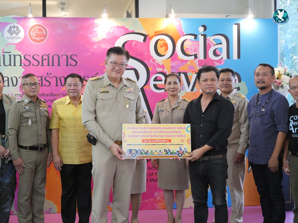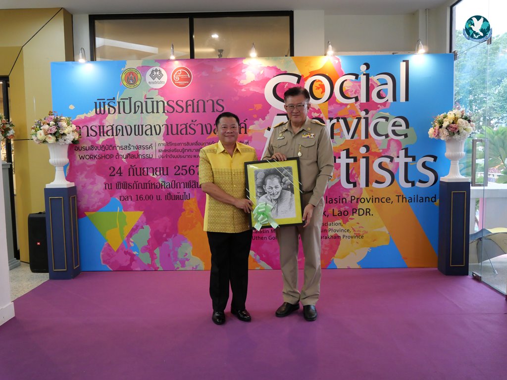 กาฬสินธุ์ เปิดนิทรรศการ Social Service Artists By Esan Artists Association แสดงผลงานสร้างสรรค์ประมูลหารายได้มอบทุนการศึกษานิสิต 15 สถาบันในภาคอีสาน ได้เงินเกือบ 4 ล้าน