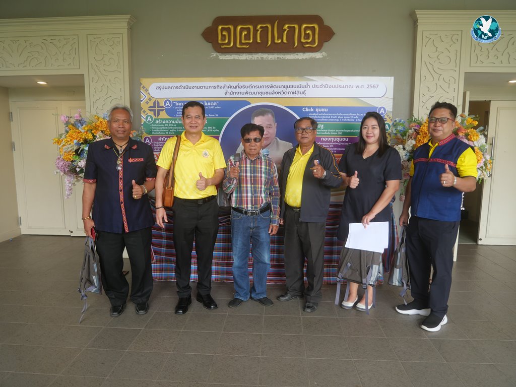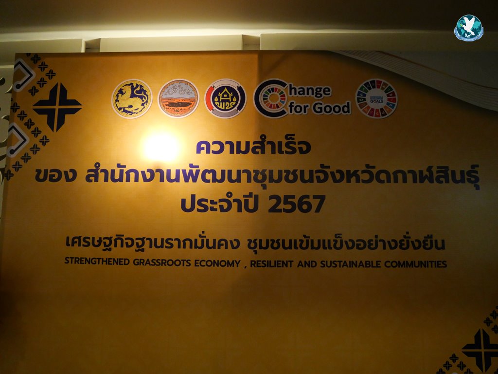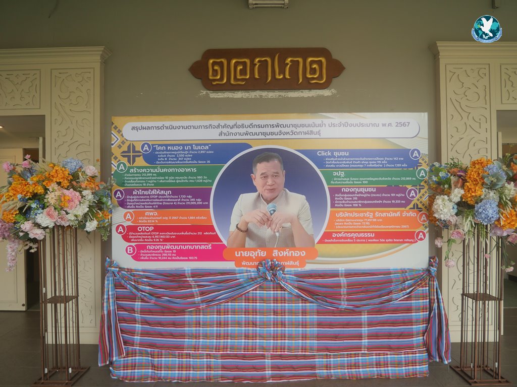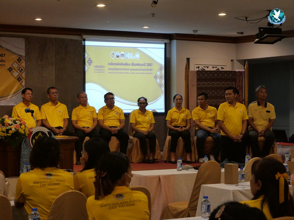 นายอุทัย สิงห์ทอง พัฒนาการจังหวัดกาฬสินธุ์ กล่าวว่า ภารกิจสำคัญที่อธิบดีกรมการพัฒนาชุมชนได้เน้นย้ำให้กับทางสำนักงานพัฒนาชุมชนจังหวัดกาฬสินธุ์นั้น มีทั้งสิ้น 11 ภารกิจ คือ โครงการโคก หนอง นา โมเดล ซึ่งมีการประเมินศักยภาพศูนย์การเรียนรู้ฯไปแล้วกว่า 2,897 แปลง โครงการสร้างความมั่นคงทางอาหาร ดำเนินการครบถ้วนทั้ง 212,899 ครัวเรือน โครงการใส่ผ้าไทยให้สนุก มีกลุ่มผู้ประกอบการ OTOP ประเภทผ้าไทย 1,720 กลุ่ม ส่งเสริมการย้อมผ้าจากสีธรรมชาติ 345 กลุ่ม มียอดจำหน่ายผ้าไทยเพิ่มขึ้น 4.11% โครงการศูนย์อำนวยการขจัดความยากจนและพัฒนาคนทุกช่วงวัยอย่างยั่งยืนตามหลักปรัชญาของเศรษฐกิจพอเพียง มีครัวเรือนผ่านเกณฑ์ จปฐ. จำนวน 1,884 ครัวเรือน คิดเป็น 83.14% ส่วนของ OTOP มีจำนวนผลิตภัณฑ์เพิ่มขึ้น 212 ผลิตภัณฑ์ มียอดจำหน่ายสะสม 6,957,160 บาท เพิ่มขึ้น 9.35% โครงการพัฒนาบทบาทสตรี มีจำนวนสมาชิกทั้งสิ้น 298,113 คน เพิ่มขึ้น10,244 คน คิดเป็น 103.75% โครงการ Click ชุมชน มีการพัฒนาฐานข้อมูลชุมชนให้มีความถูกต้อง ครบถ้วน และสามารถนำไปใช้ประโยชน์ได้ 13 เมนู โครงการ จปฐ. มีการนำเสนอรับรองคุณภาพข้อมูลระดับจังหวัด จำนวน 212,869 ครัวเรือน ที่ระดับความเชื่อมั่น ร้อยละ 100 โครงการกองทุนชุมชน จัดตั้งกลุ่มออมทรัพย์หมู่บ้านจำนวน 101 หมู่บ้าน และเพิ่มจำนวนสมาชิกกลุ่มออมทรัพย์เพิ่มจำนวน 19,333 คน มีเงินออมในกลุ่มฯจำนวน 200.37 ล้านบาท และการขับเคลื่อนองค์กรคุณธรรม มีผลสำเร็จในการขับเคลื่อน 5 ประการ คือ พอเพียง วินัย สุจริต จิตอาสา กตัญญู ให้แก่บุคลากรในองค์กรกว่า 113 คน อีกทั้งทางสำนักงานพัฒนาชุมชนจังหวัดกาฬสินธุ์ ยังได้รับรางวัลต่างๆในระดับจังหวัดและระดับประเทศอีกมากมาย