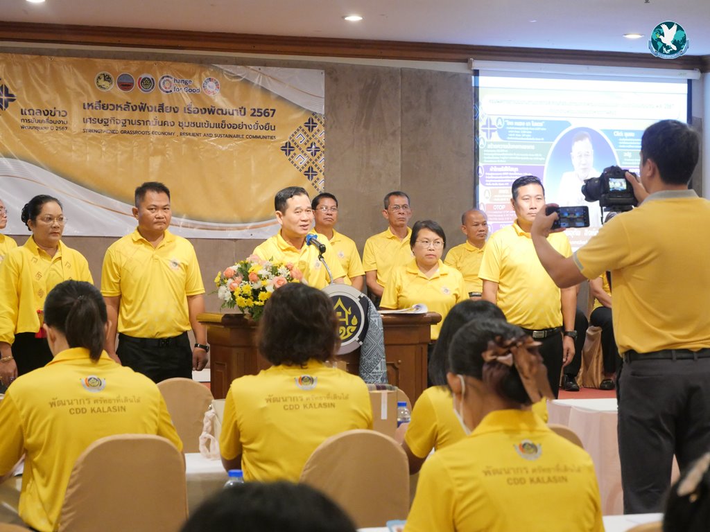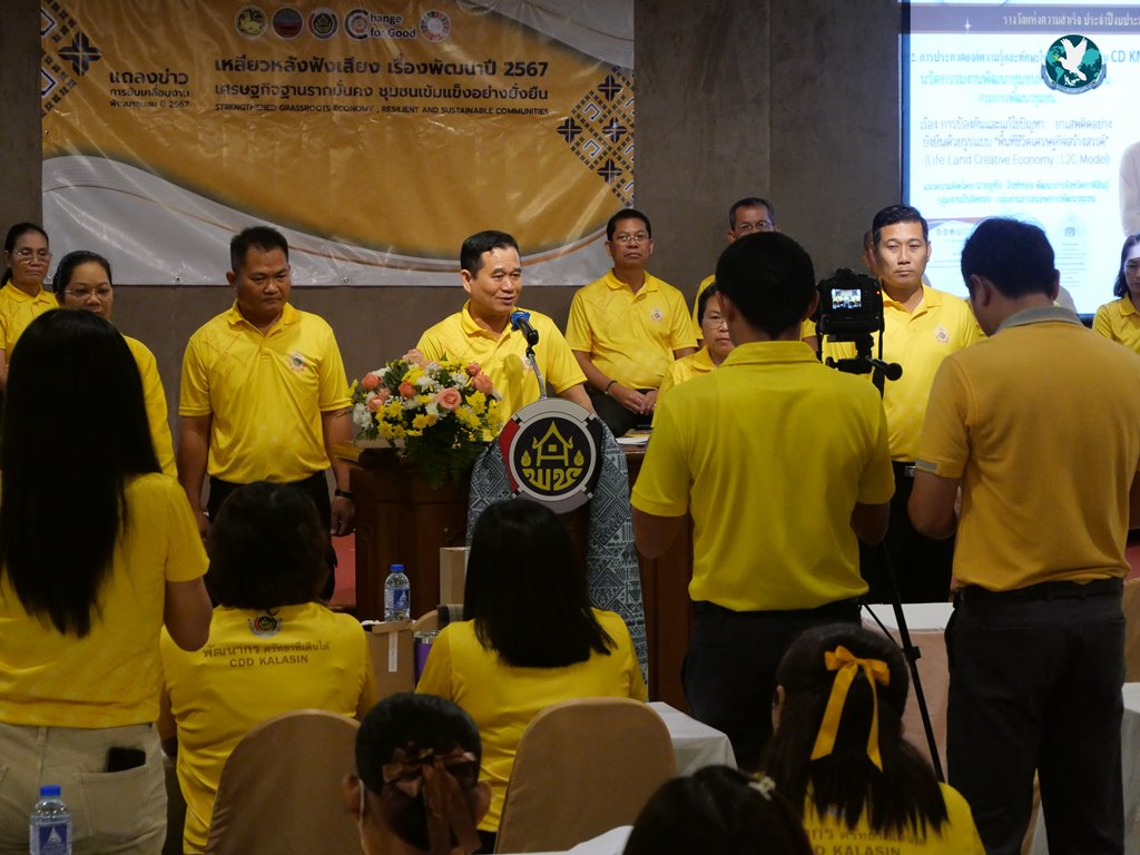 วันที่ 30 กันยายน 2567 ที่ห้องดอกเกด โรงแรมริมปาว อำเภอเมือง จังหวัดกาฬสินธุ์ นายอุทัย สิงห์ทอง พัฒนาการจังหวัดกาฬสินธุ์ จัดแถลงข่าวการขับเคลื่อนงาน เหลียวหลังฟังเสียง เรื่องพัฒนาปี 2567 เศรษฐกิจฐานรากมั่นคง ชุมชนเข้มแข็งอย่างยั่งยืน ตามภารกิจสำคัญที่อธิบดีกรมการพัฒนาชุมชนเน้นย้ำ ประจำปีงบประมาณ 2567 โดยมี พนักงานเจ้าหน้าที่สำนักงานพัฒนาชุมชนทั้ง 18 อำเภอ จังหวัดกาฬสินธุ์ และสื่อมวลชนเข้าร่วมงานอย่างพร้อมเพรียง โดยได้อ่านสารของนายสยาม ศิริมงคล อธิบดีกรมการพัฒนาชุมชน ในโอกาสครบรอบ 62 ปีการต่อตั้งกรมการพัฒนาชุมชน และมอบของที่ระลึกให้สื่อมวลชนที่เข้าร่วมงานแถลงข่าวในครั้งนี้
